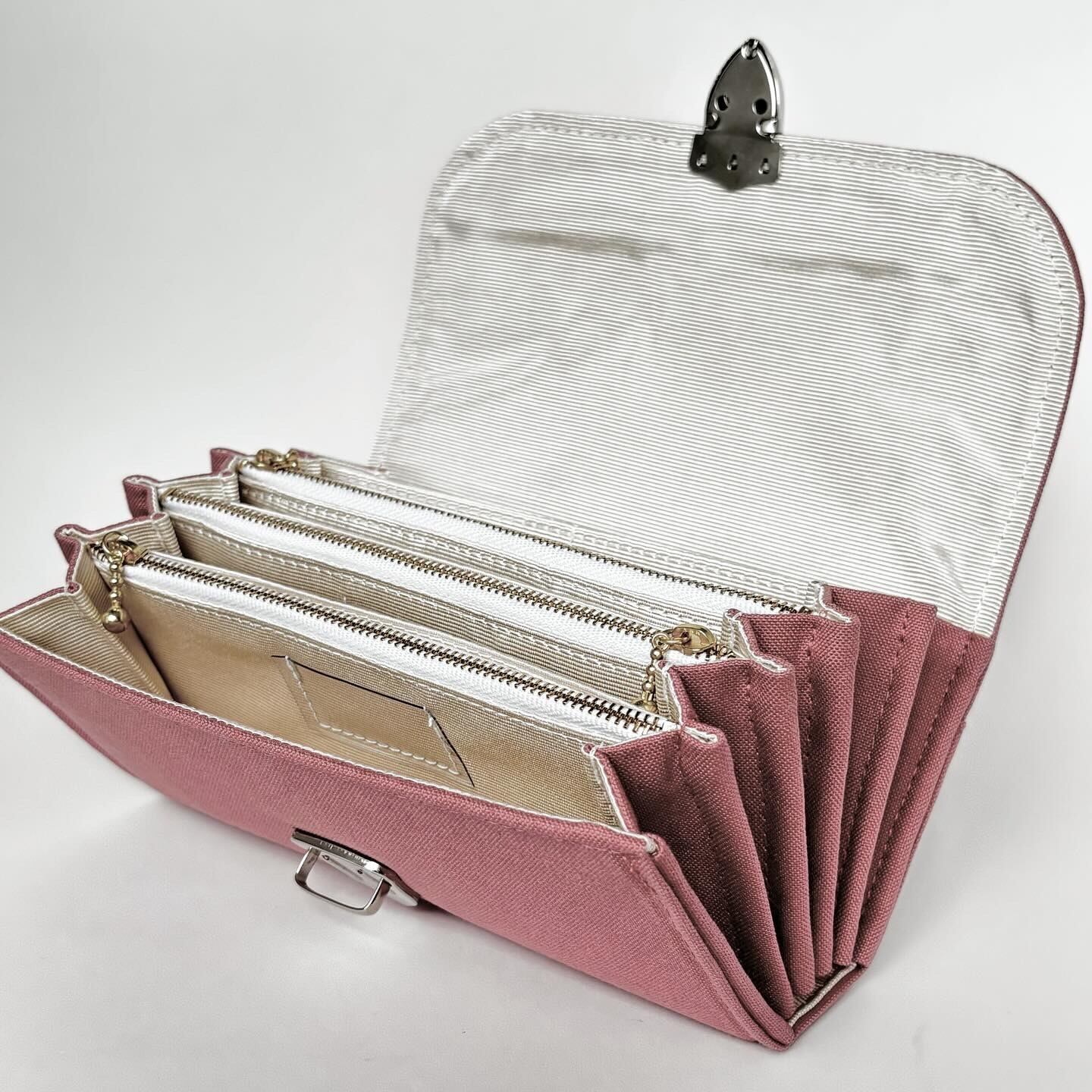 また、ファスナーポケットにはクリアポケットを付けていますので費目を書いた紙を入れられるようになっています。
