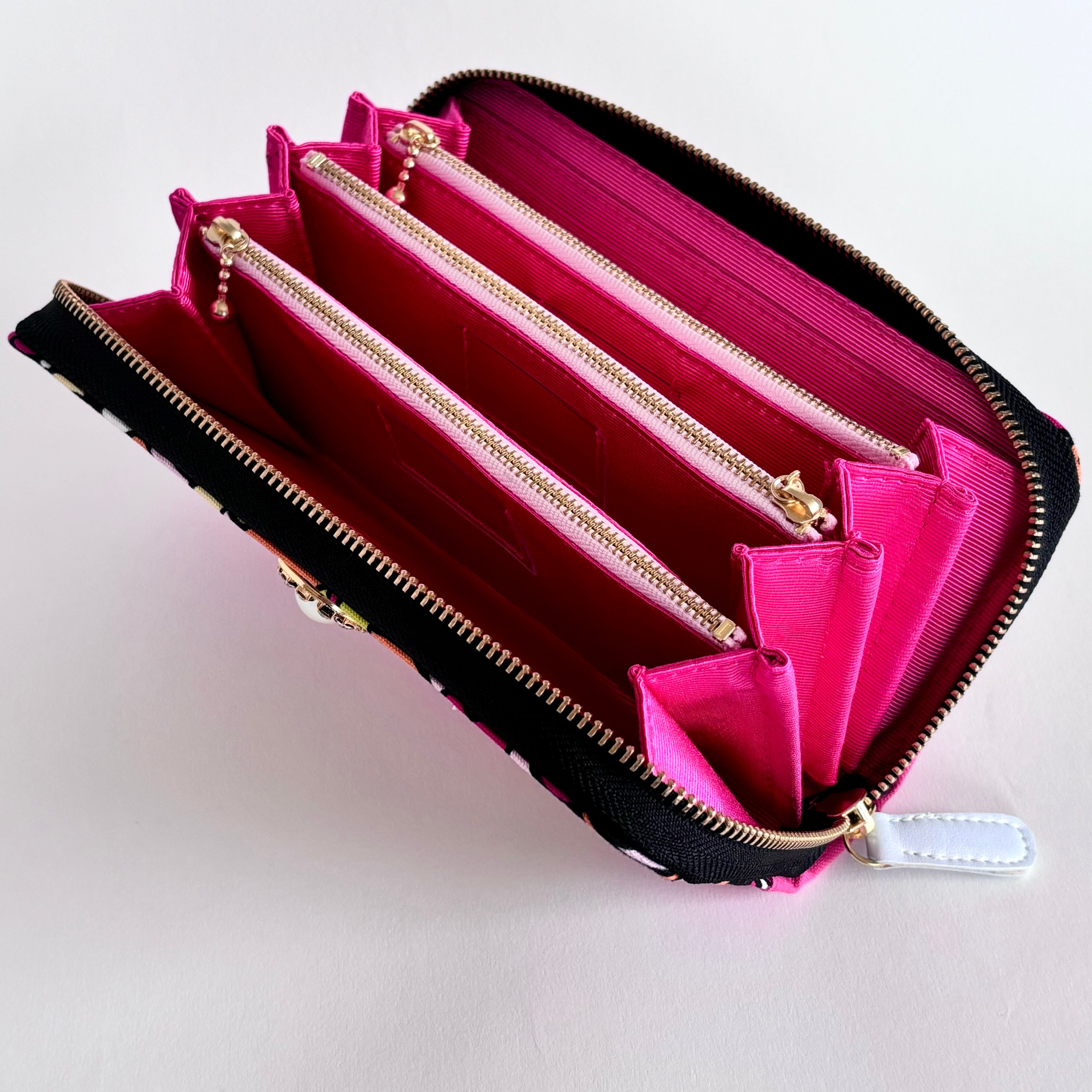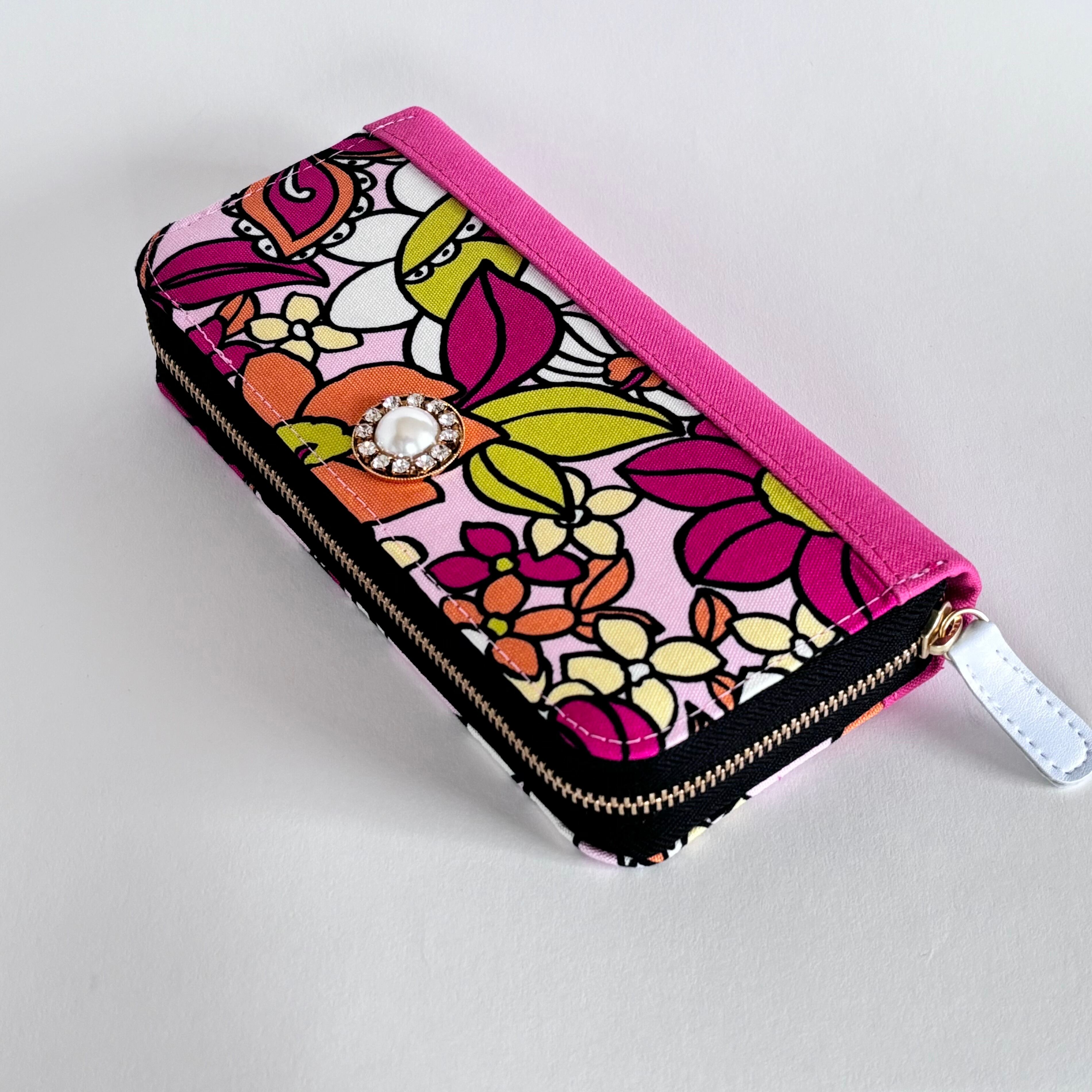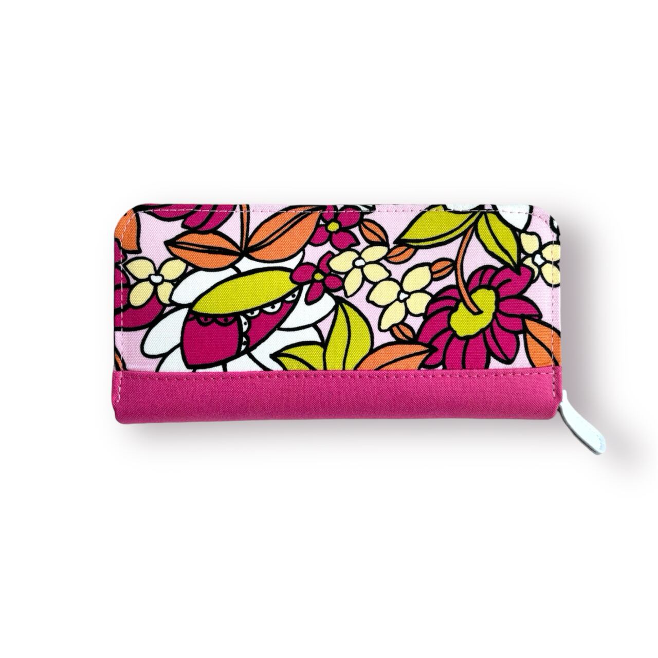 【訳あり】3ファスナーポケット/ 家計やりくり財布/レトロフラワーピンク