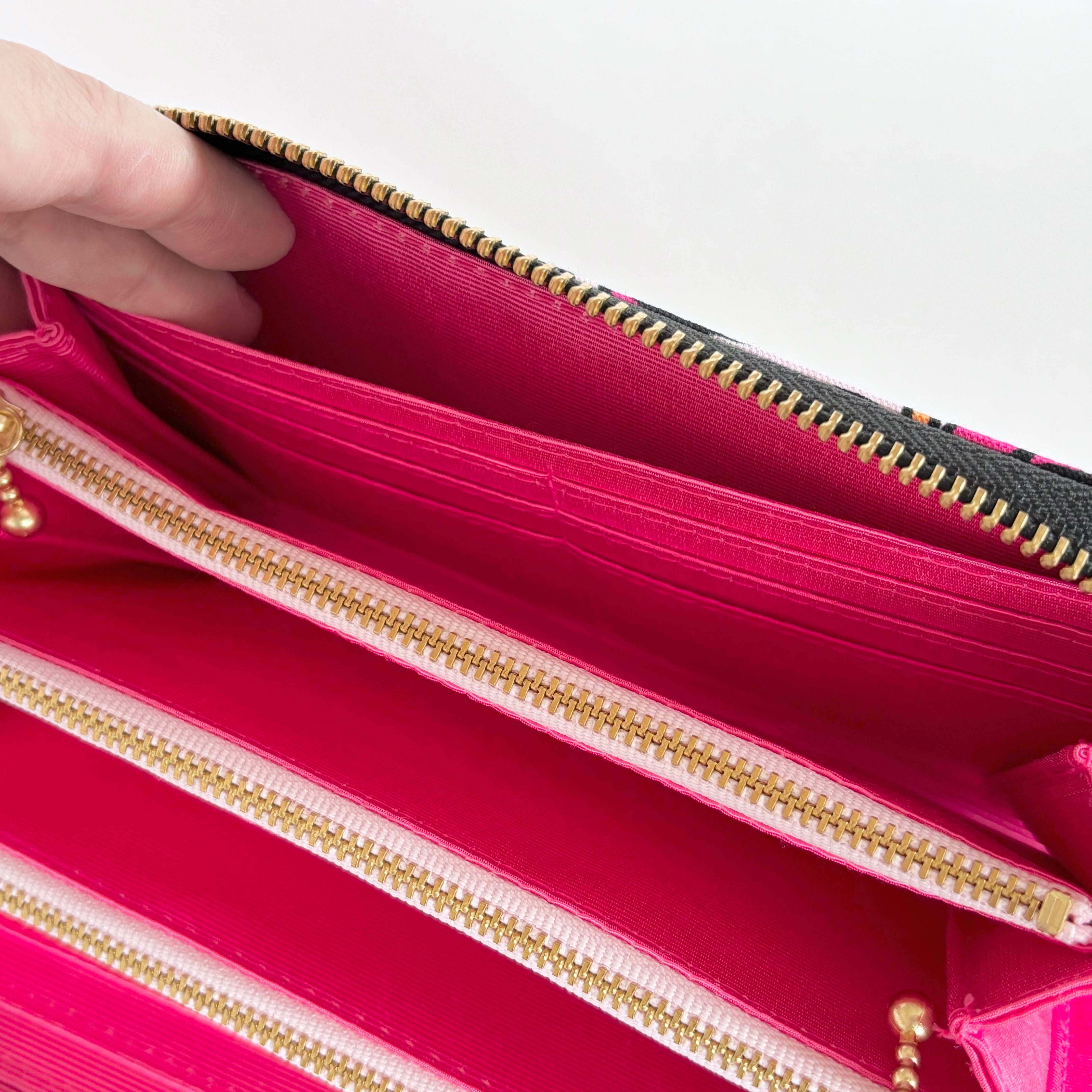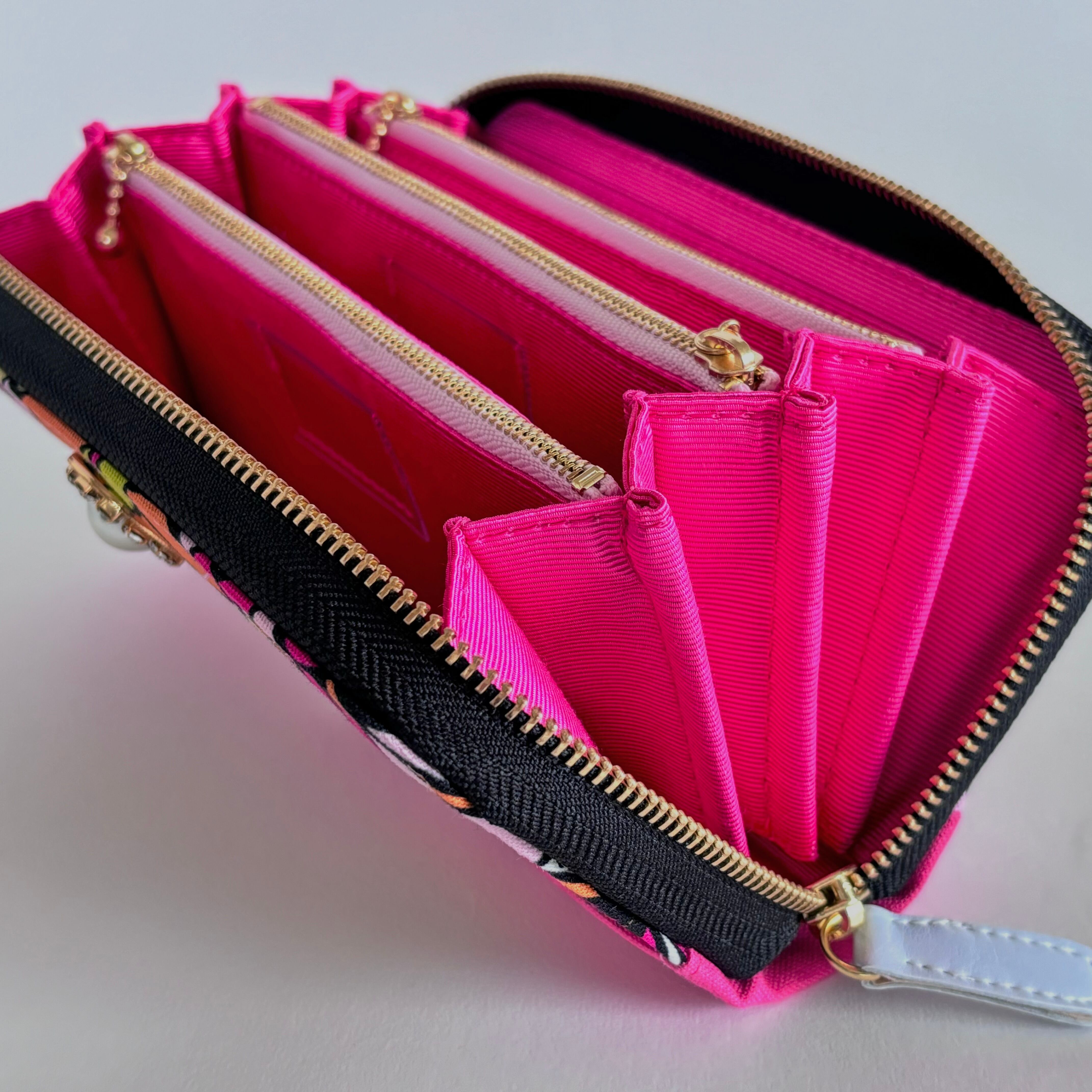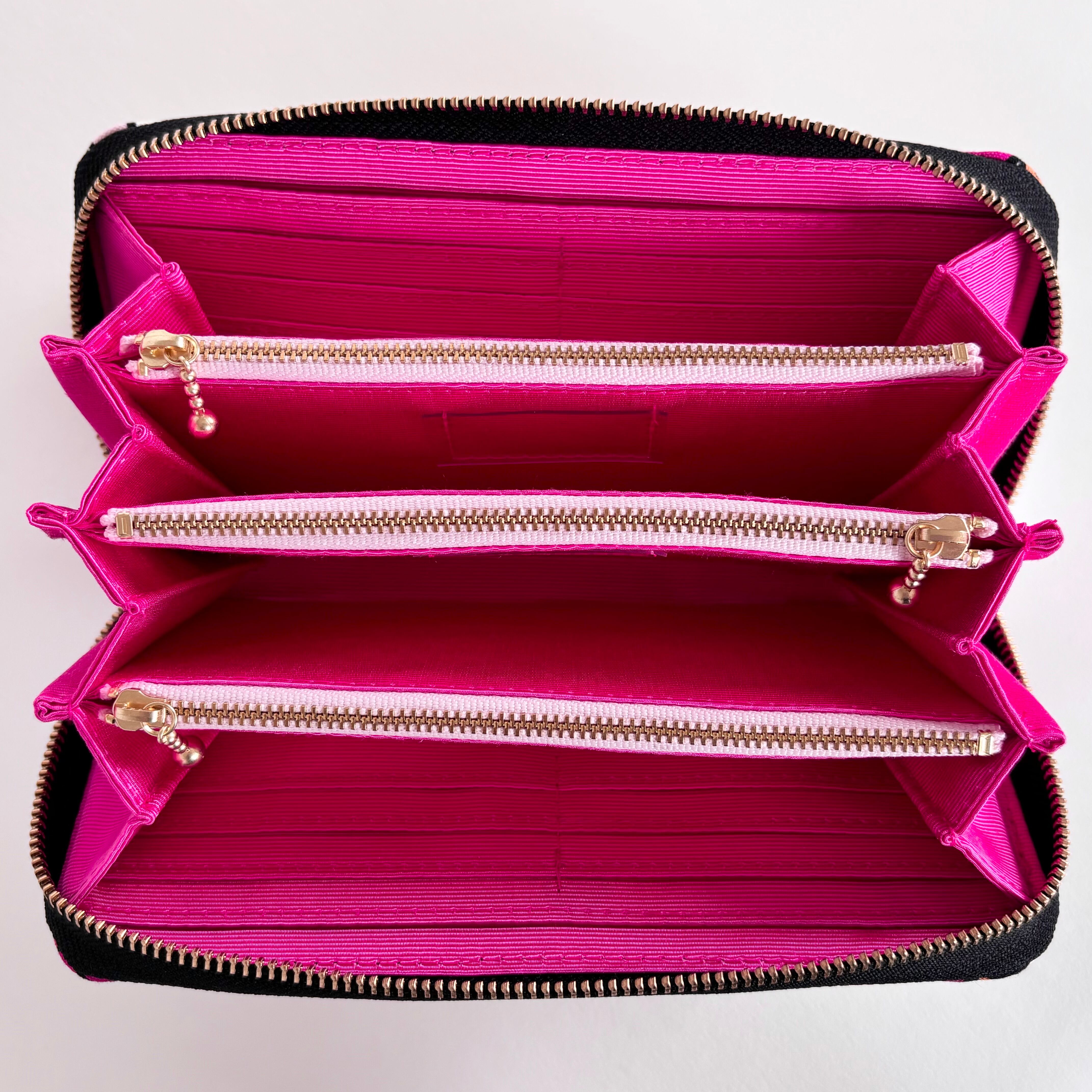 【訳あり】3ファスナーポケット/ 家計やりくり財布/レトロフラワーピンク