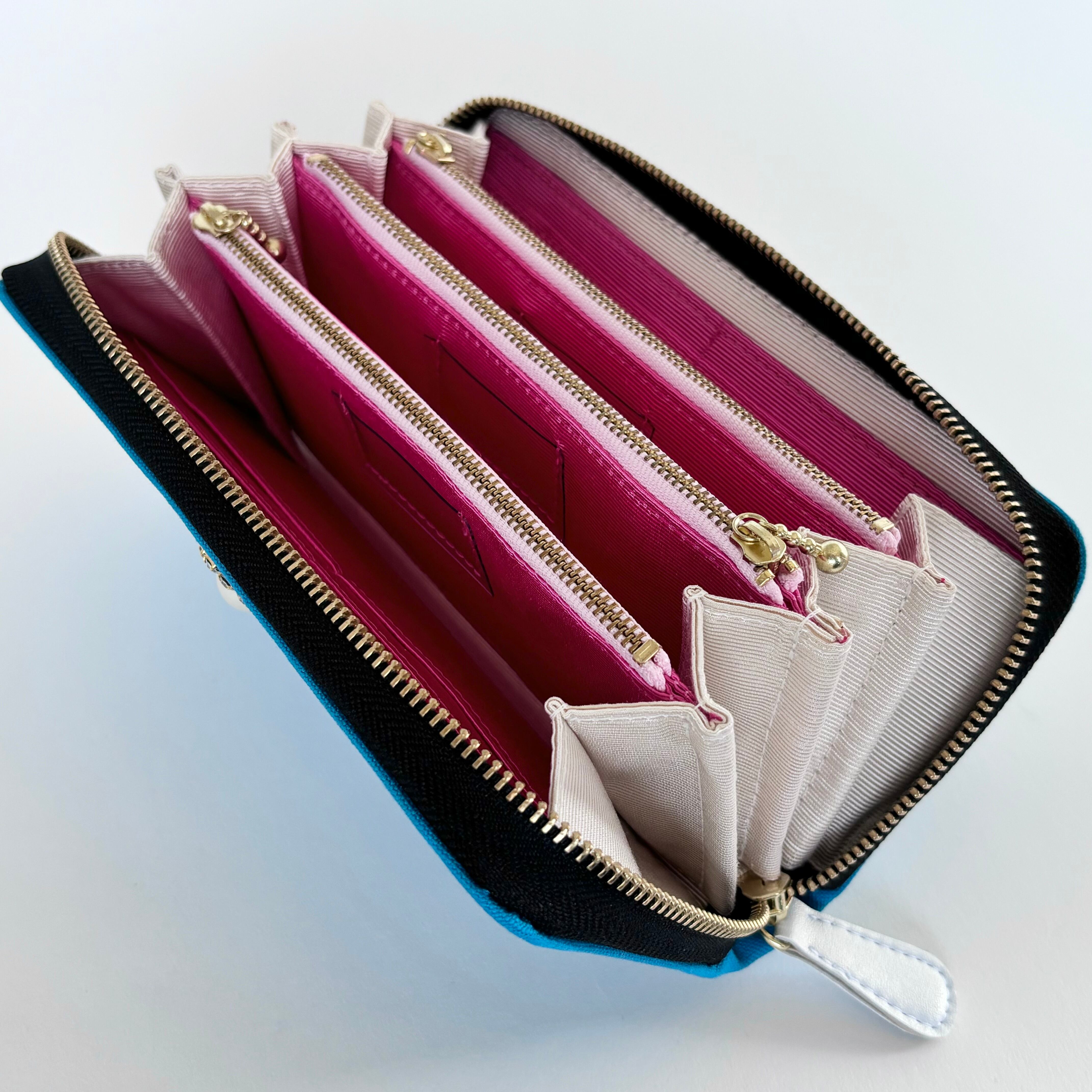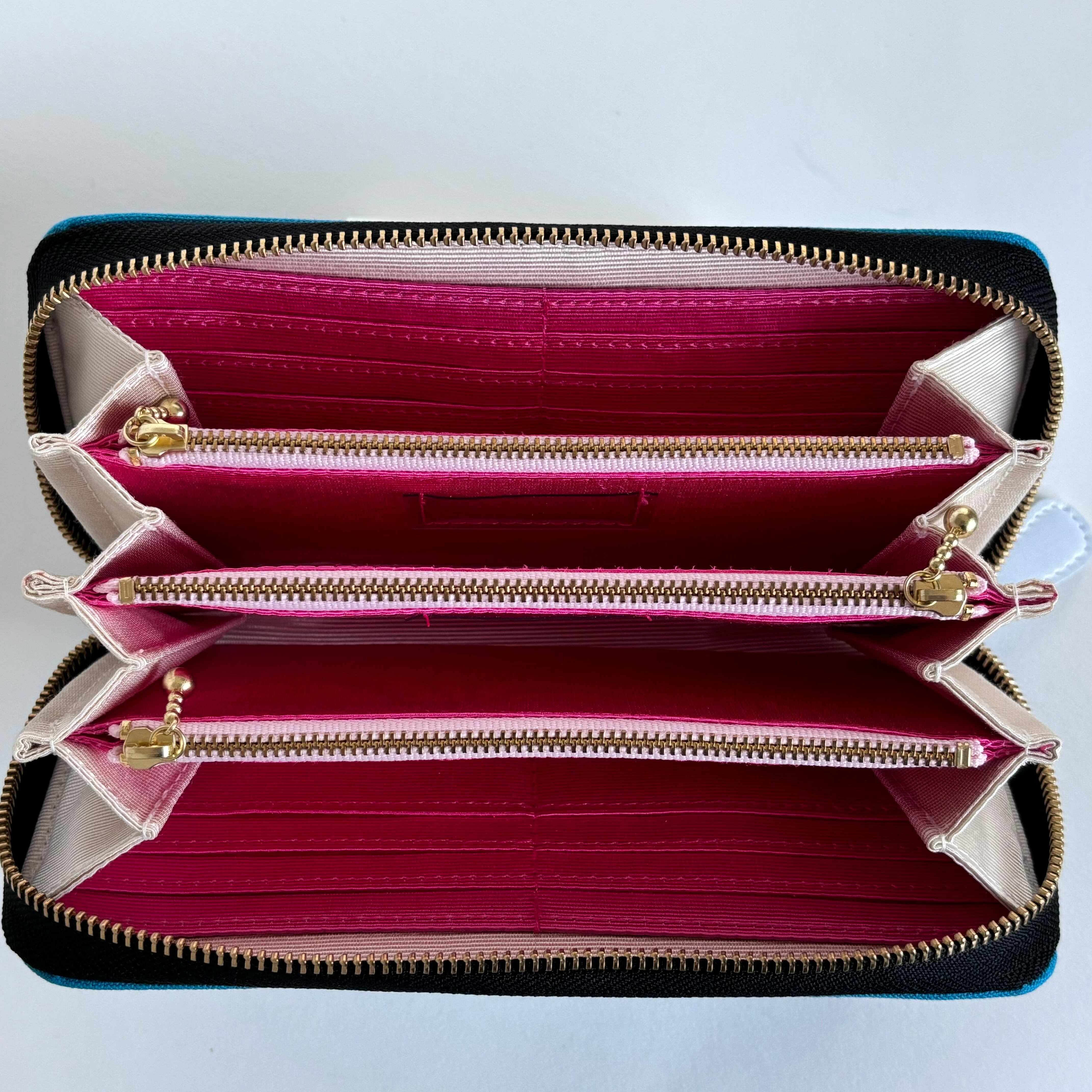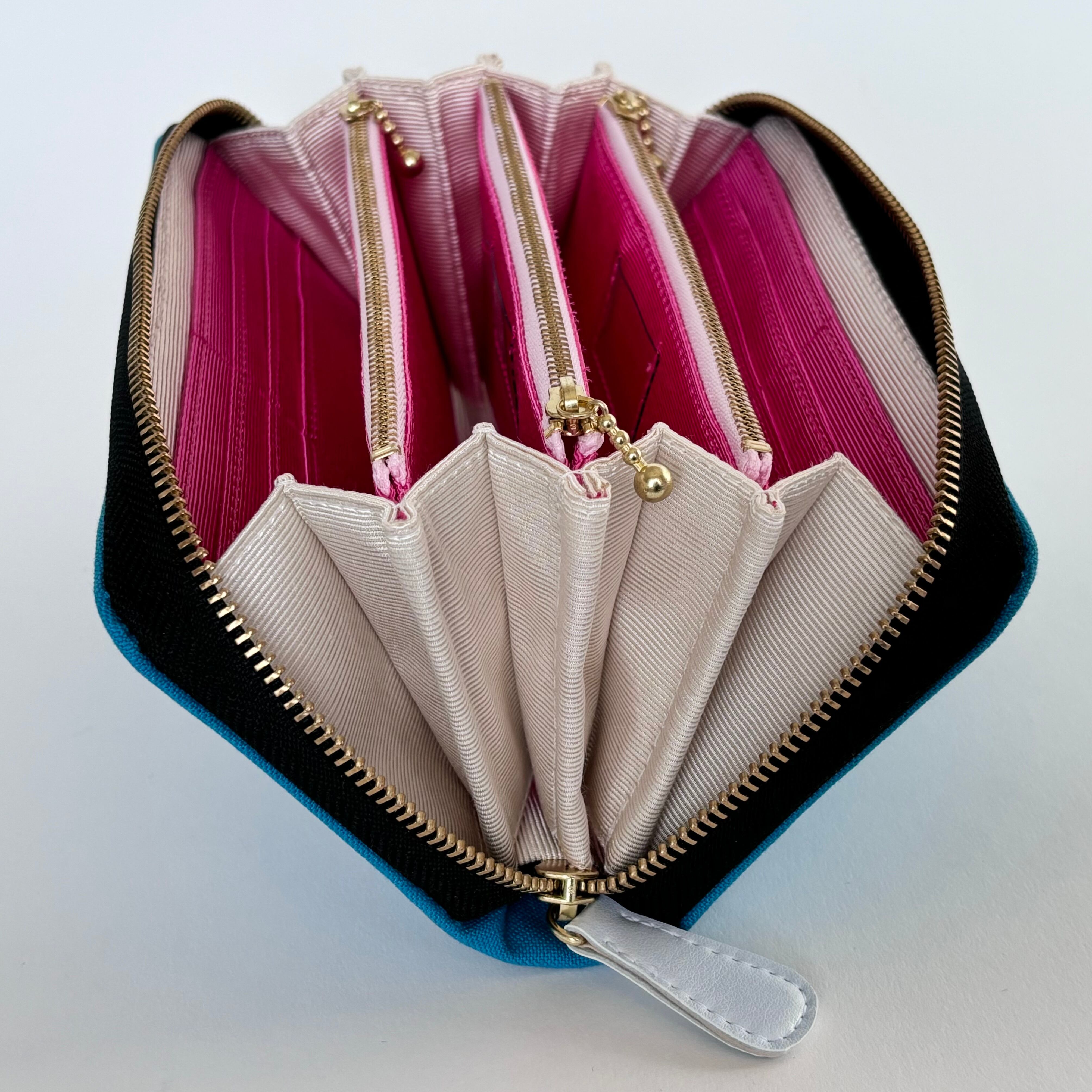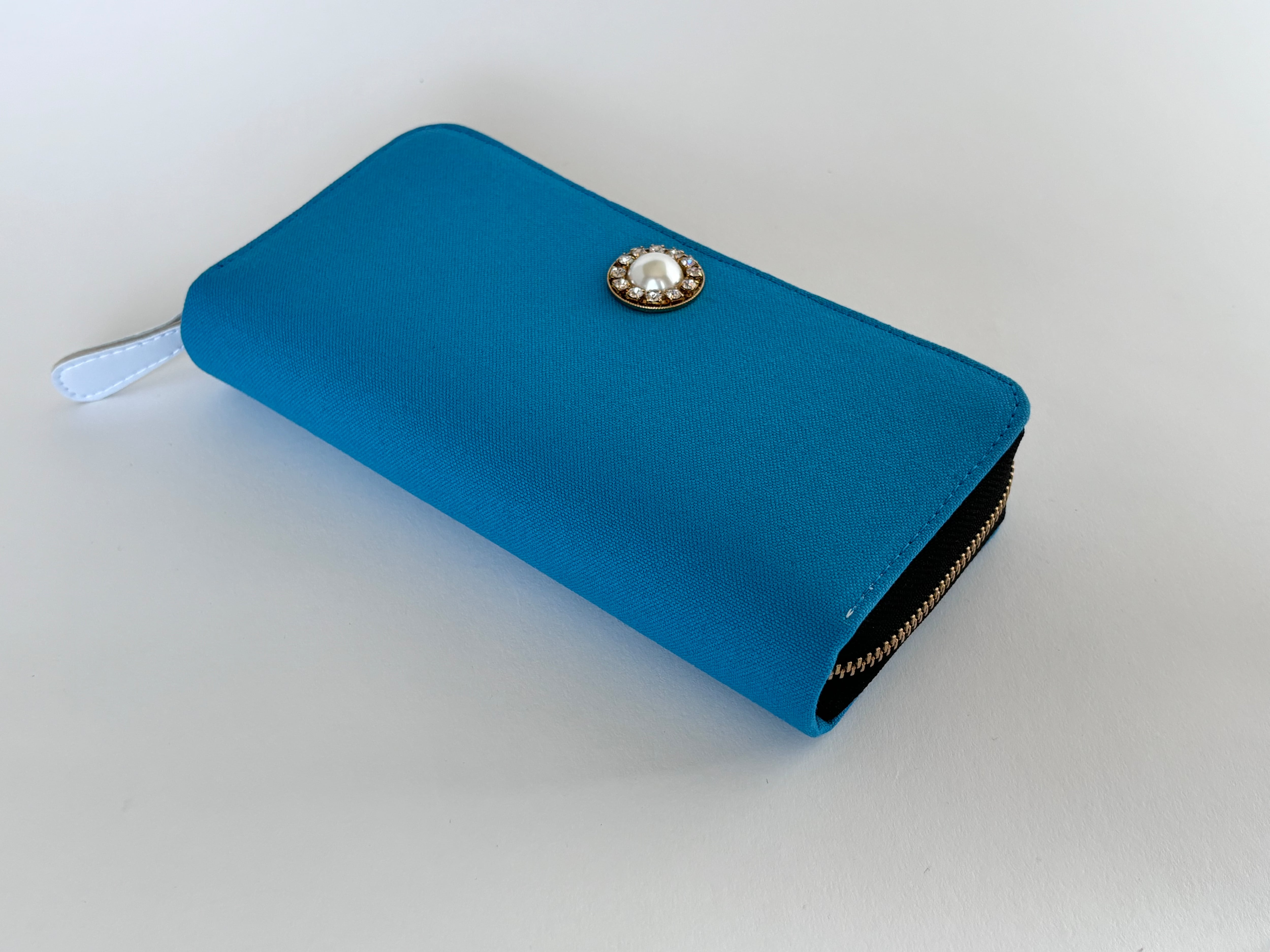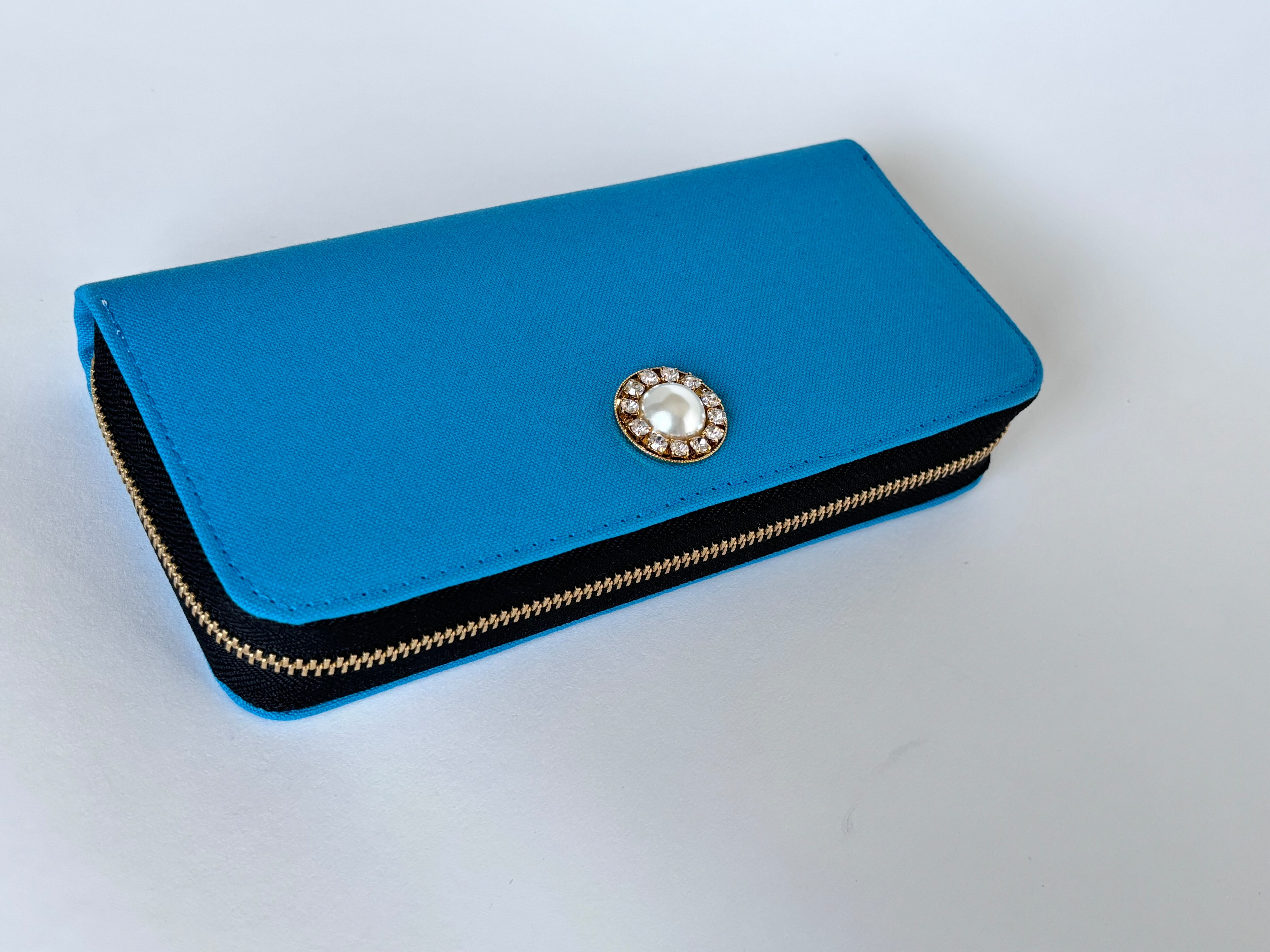 3ファスナーポケット/ 家計やりくり財布/ターコイズブルー