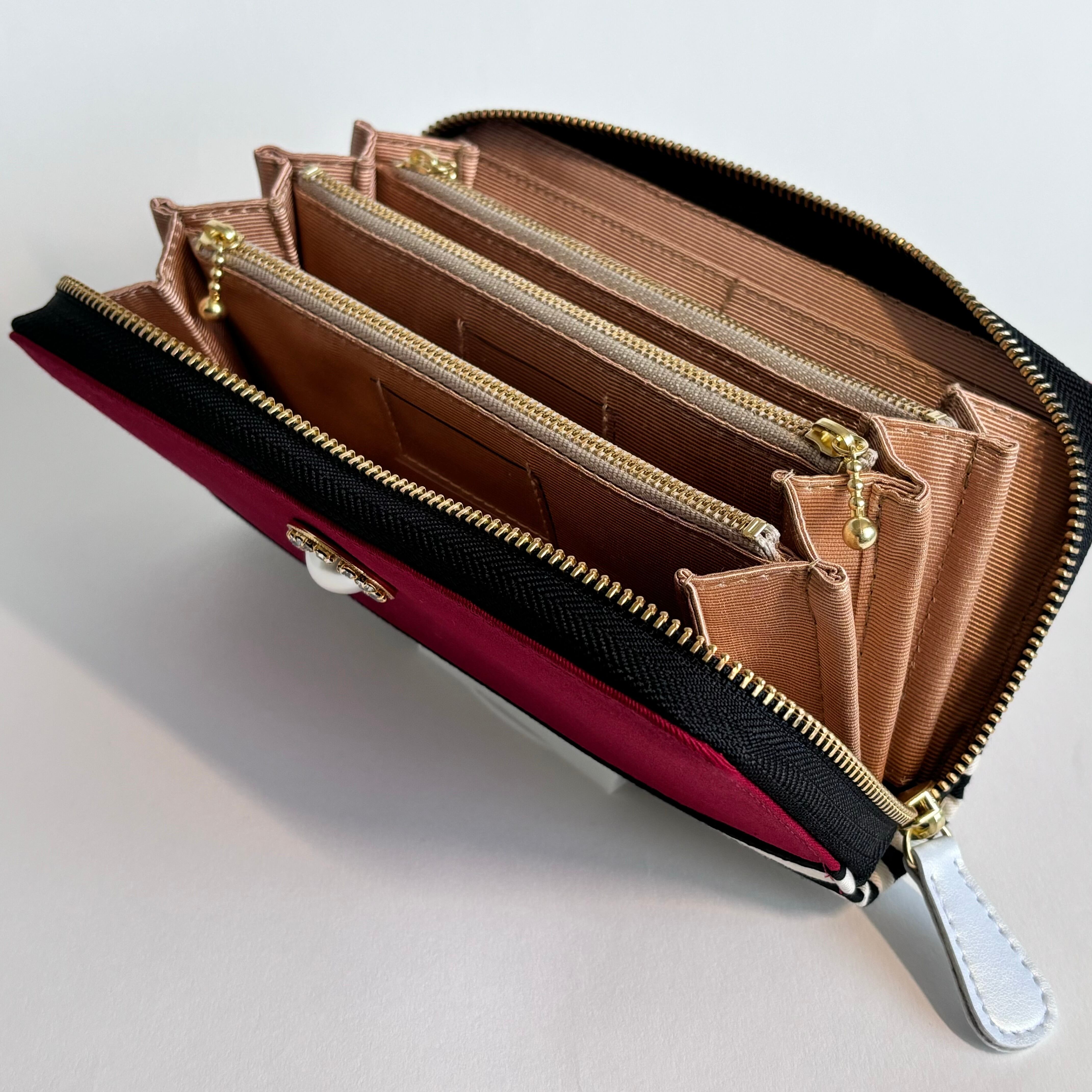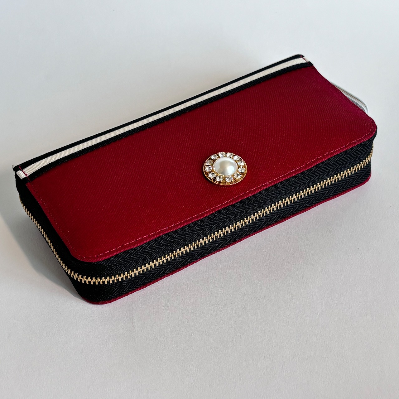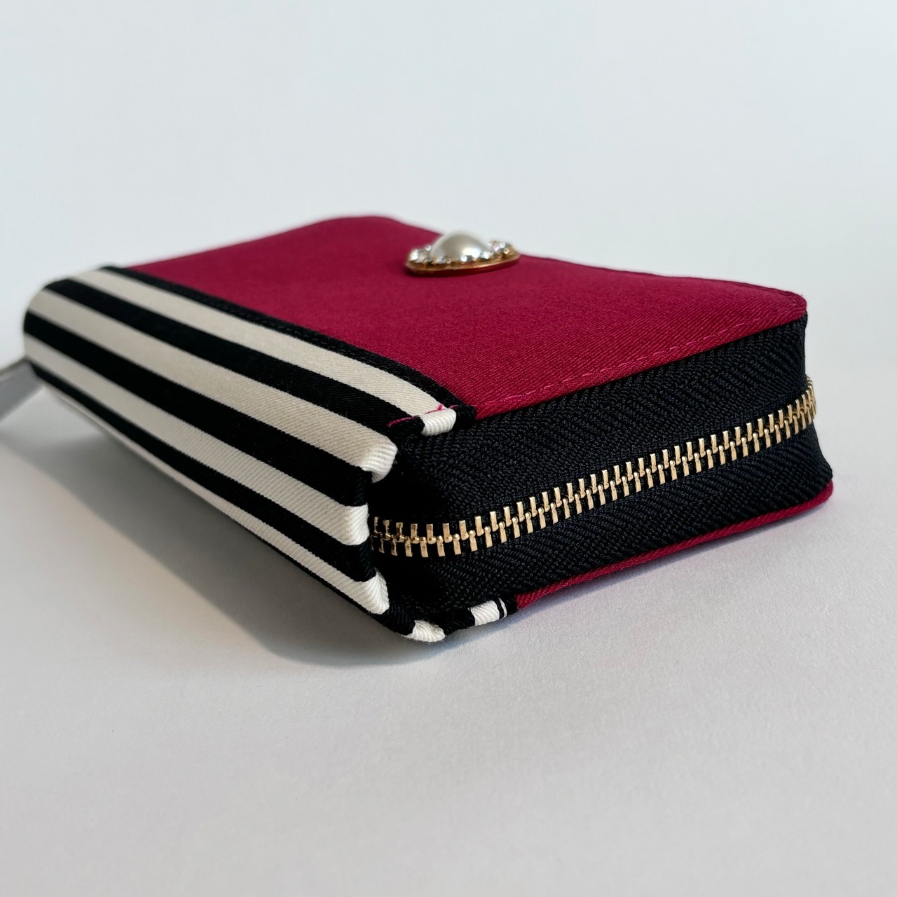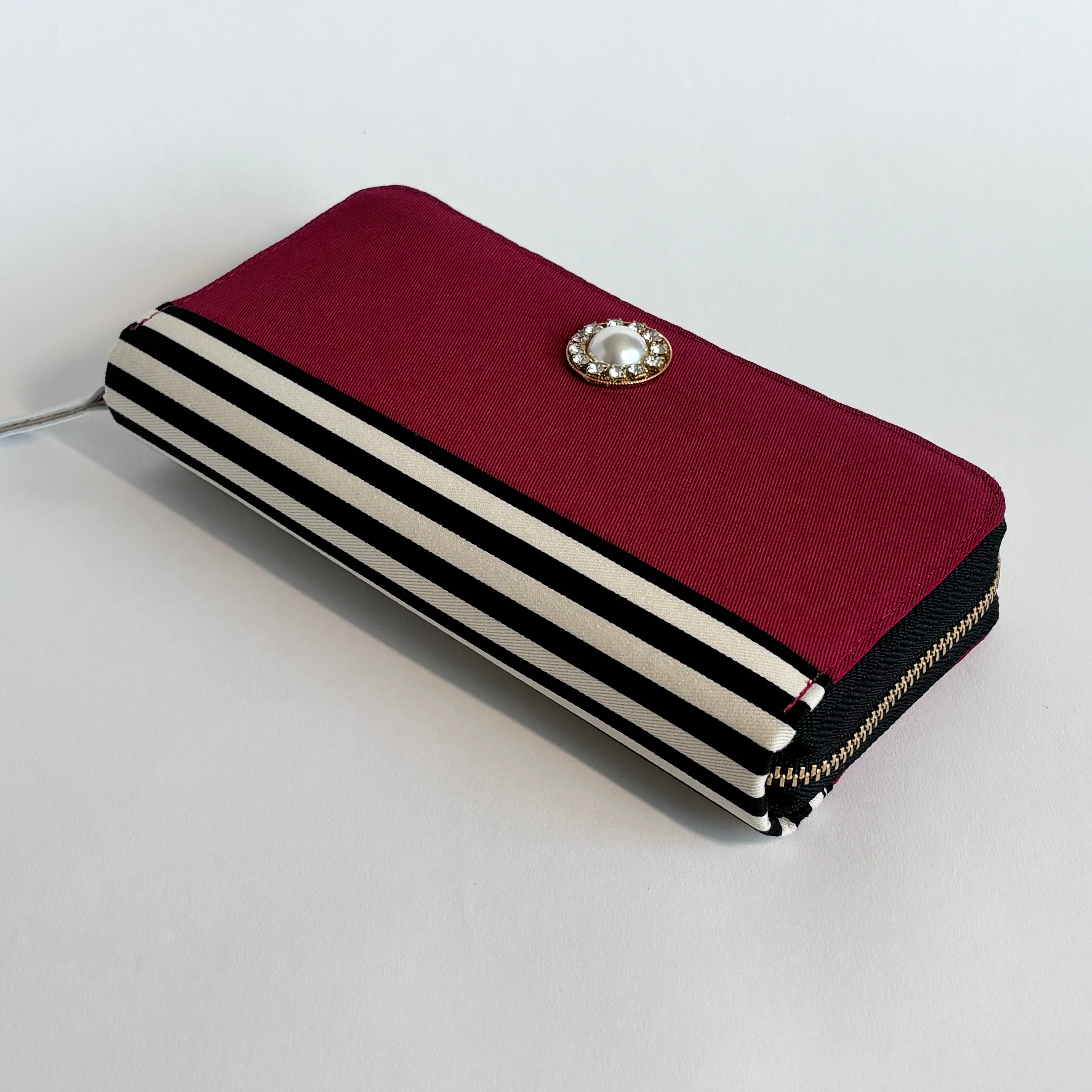 3ファスナーポケット/ 家計やりくり財布/ダークレッド×ボーダー