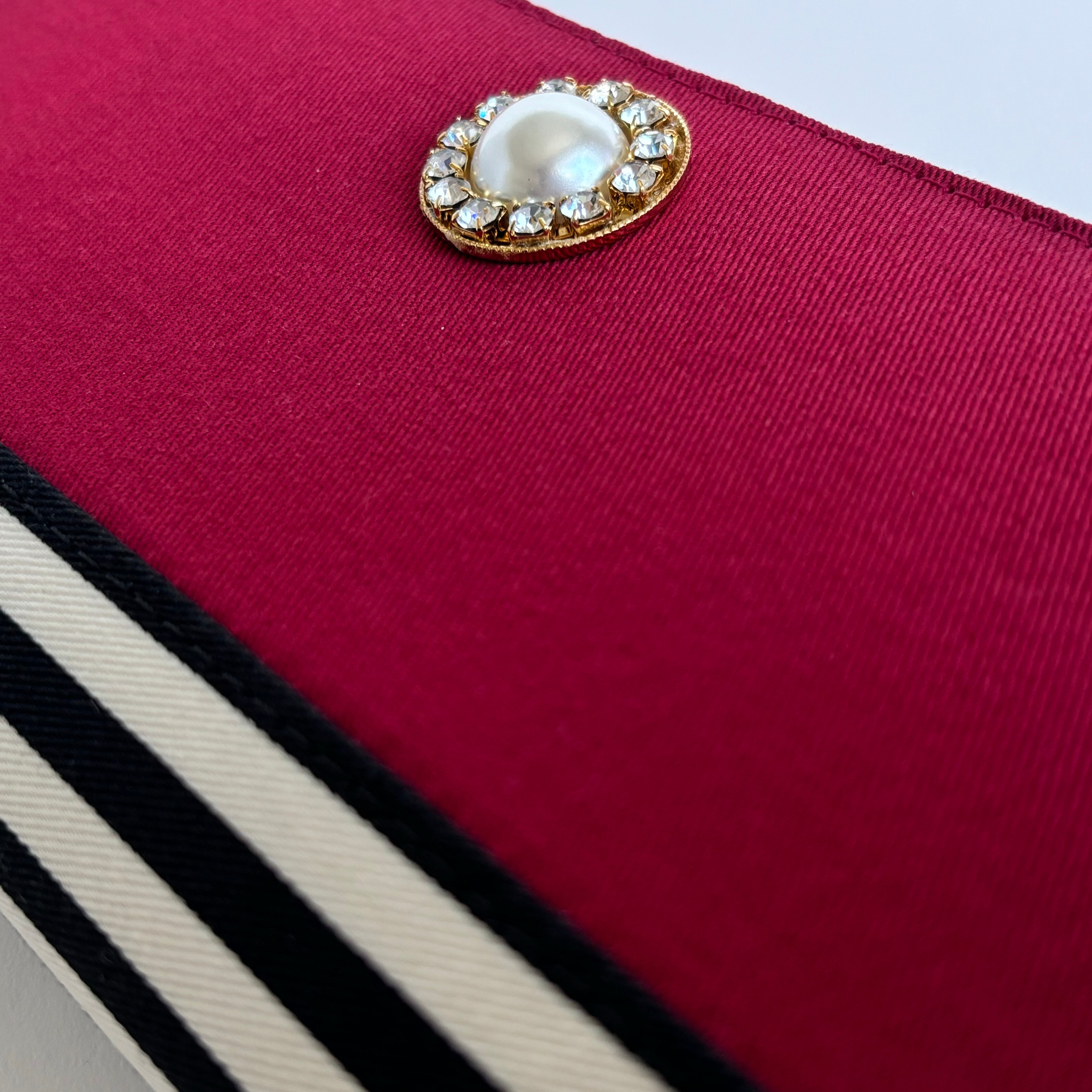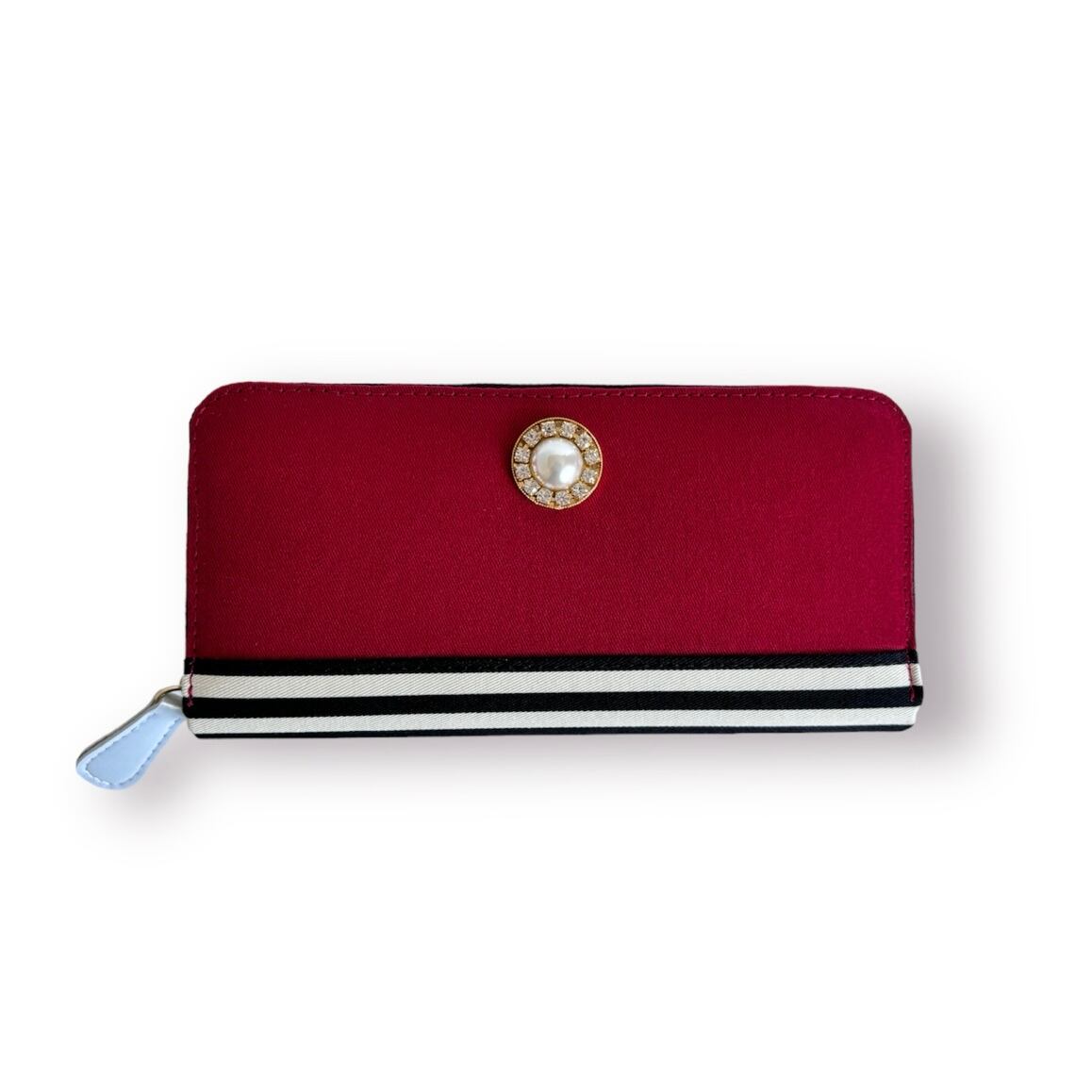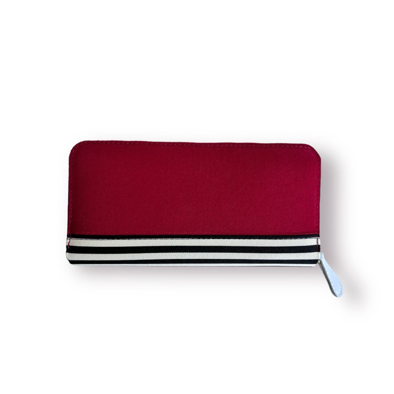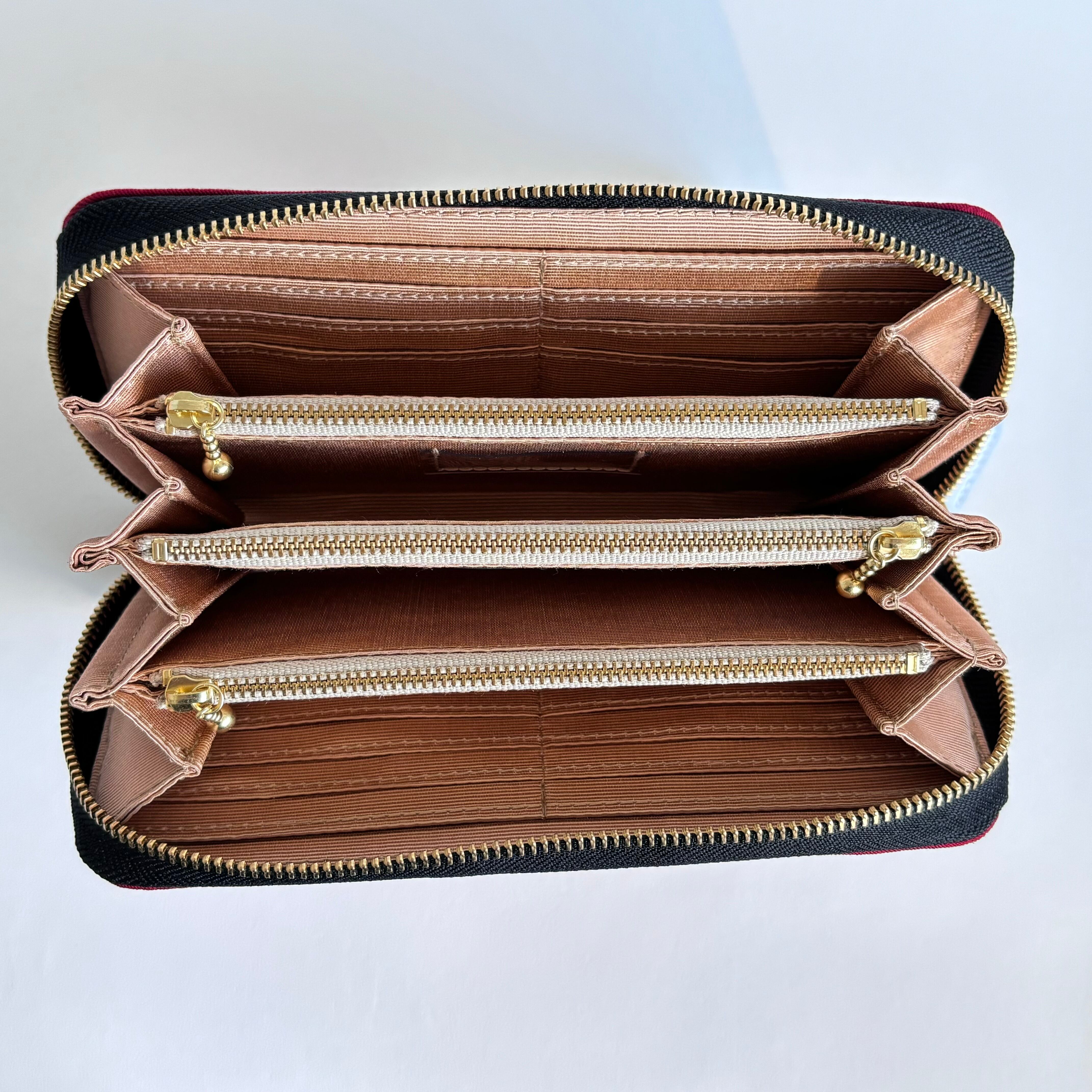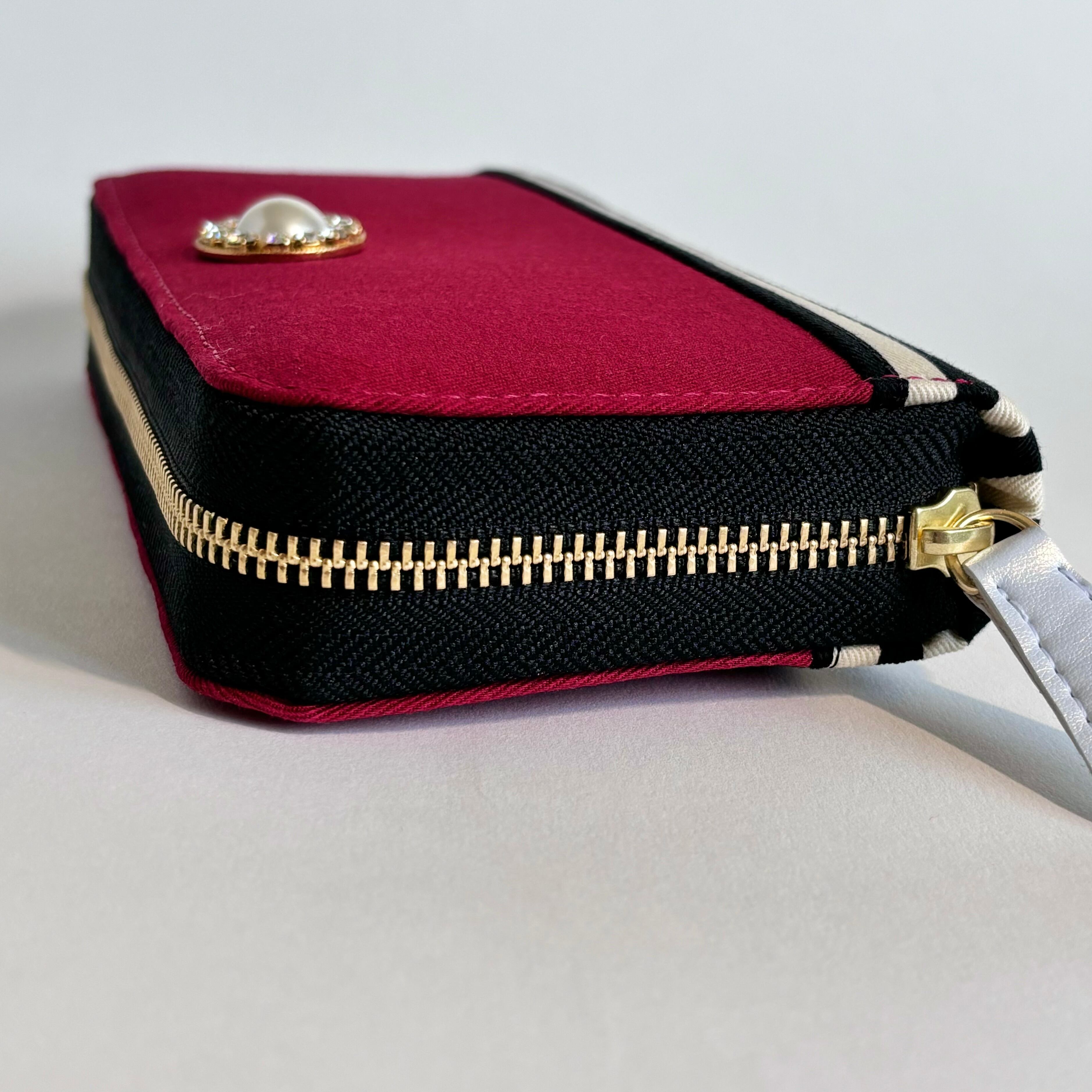 3ファスナーポケット/ 家計やりくり財布/ダークレッド×ボーダー