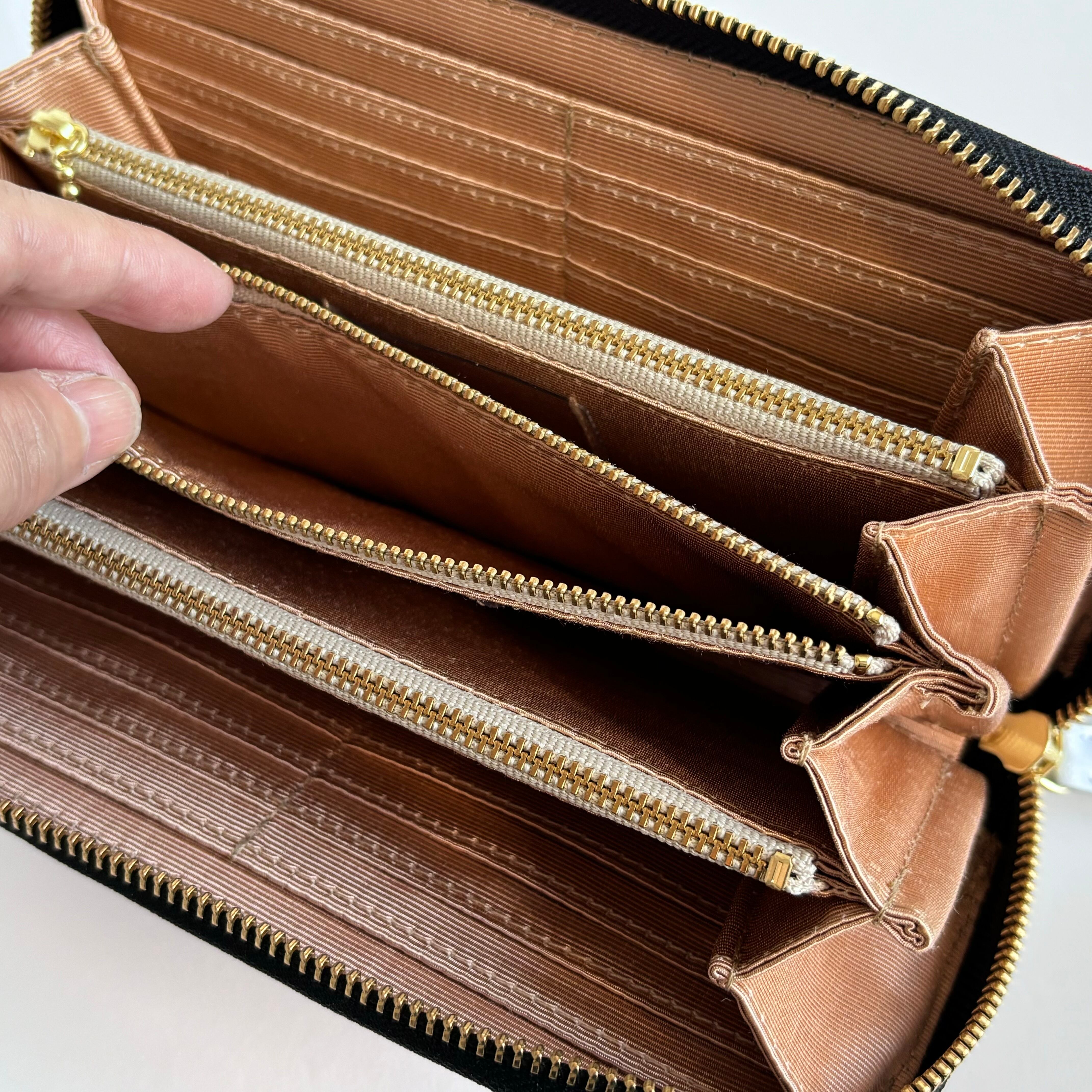 こちらのお財布は3つの費目を管理できるようにファスナーポケットが3つ付いています。