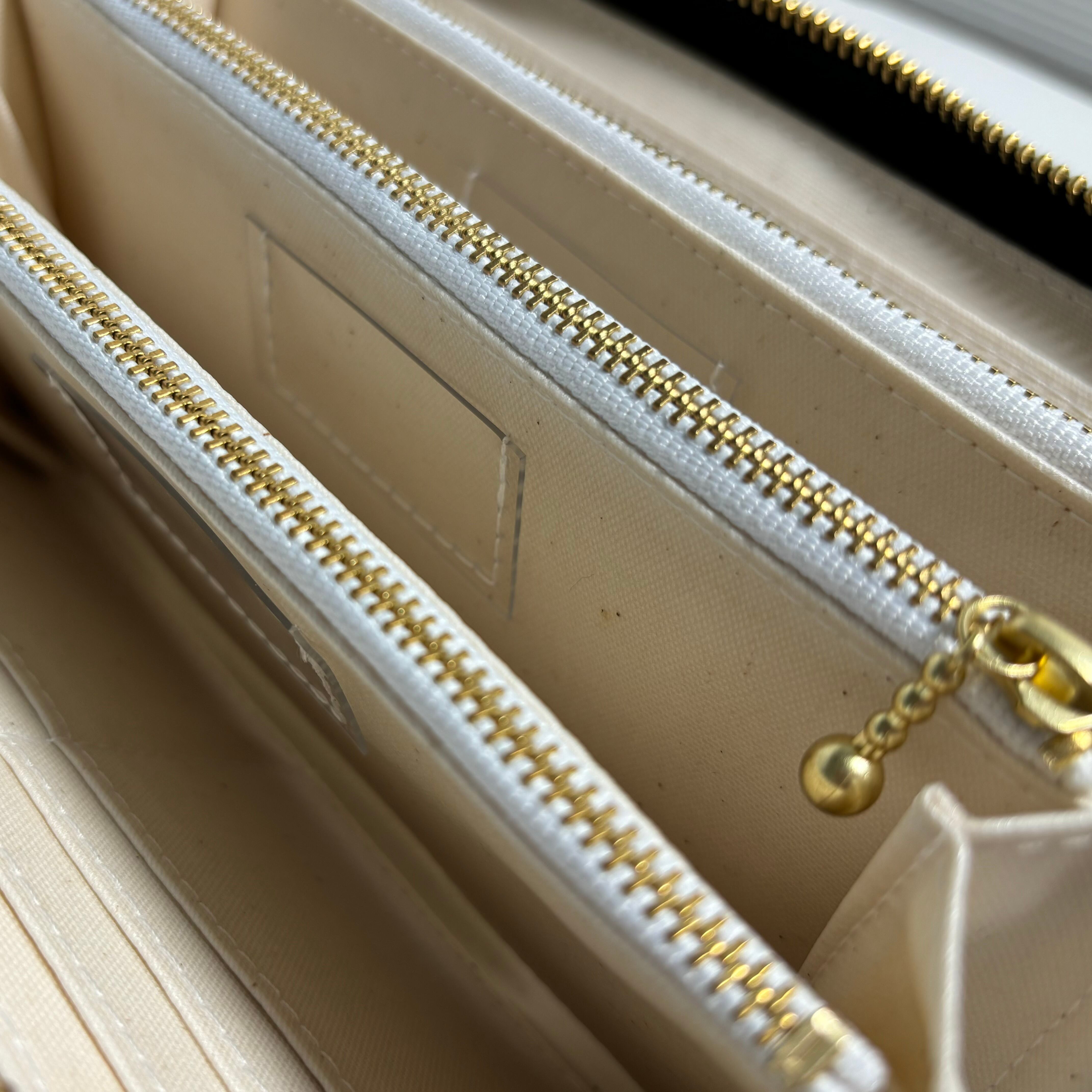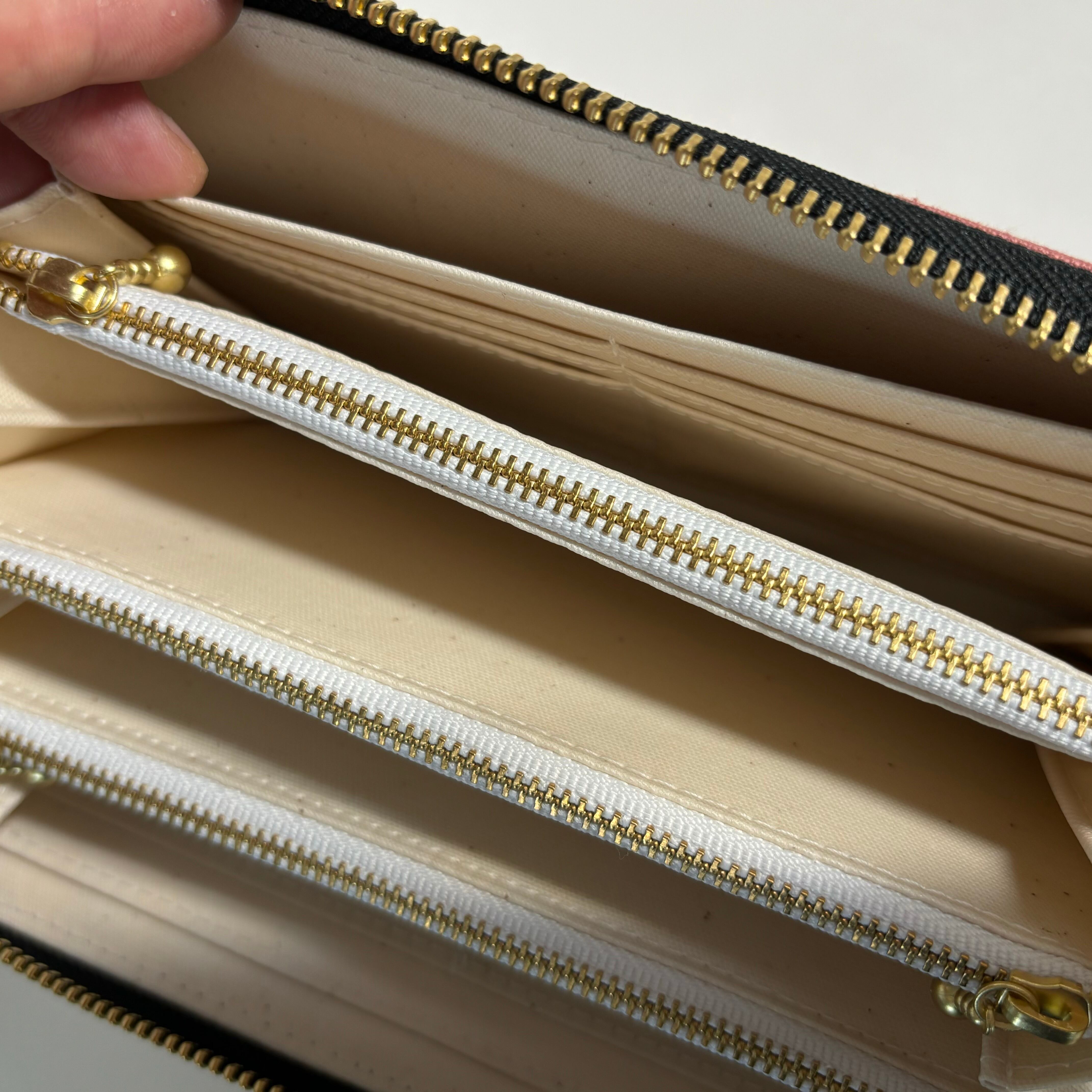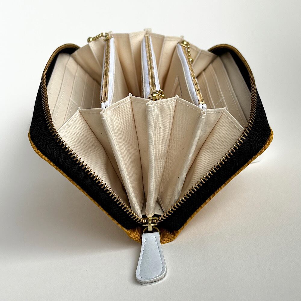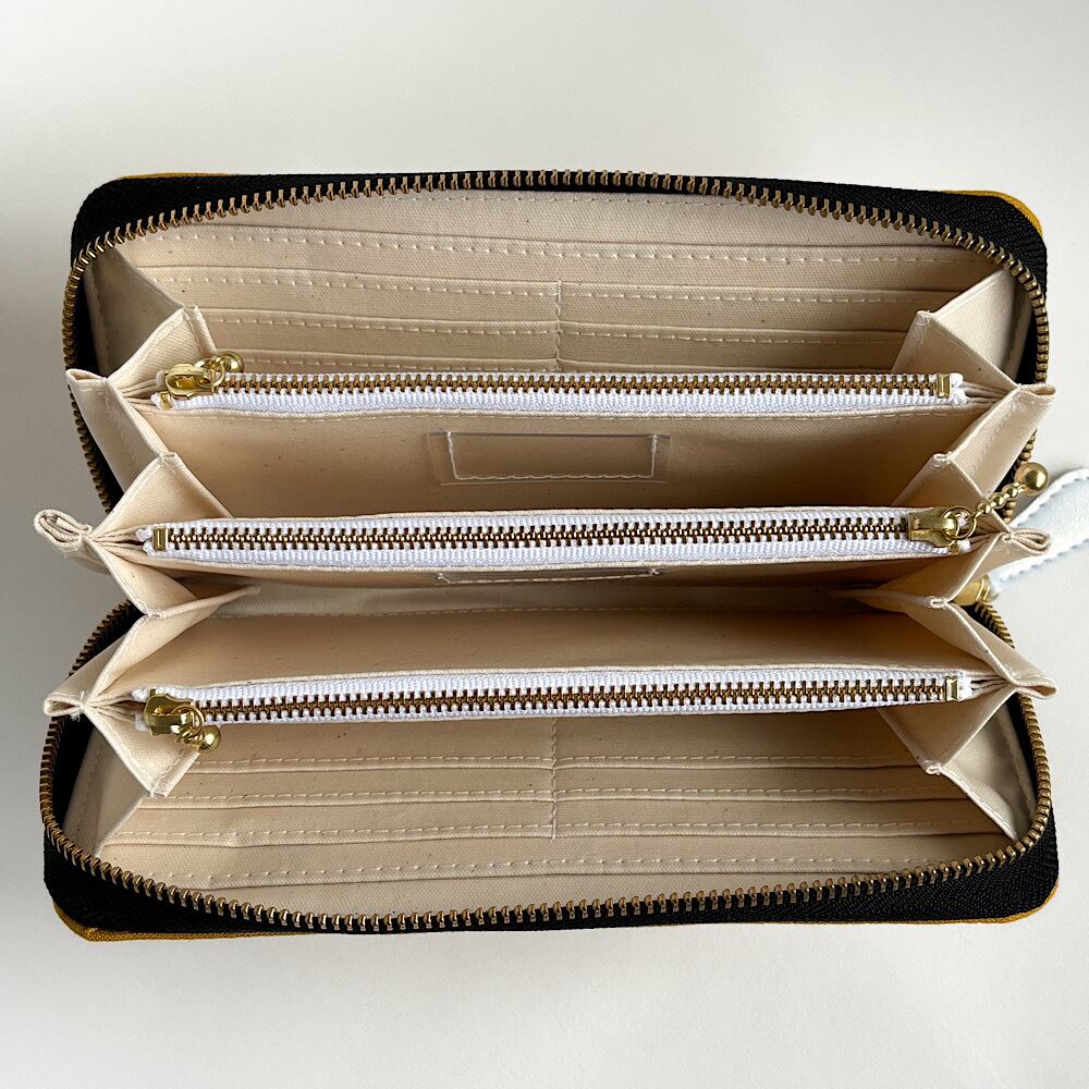 こちらのお財布は3つの費目を管理できるようにファスナーポケットが3つ付いています。