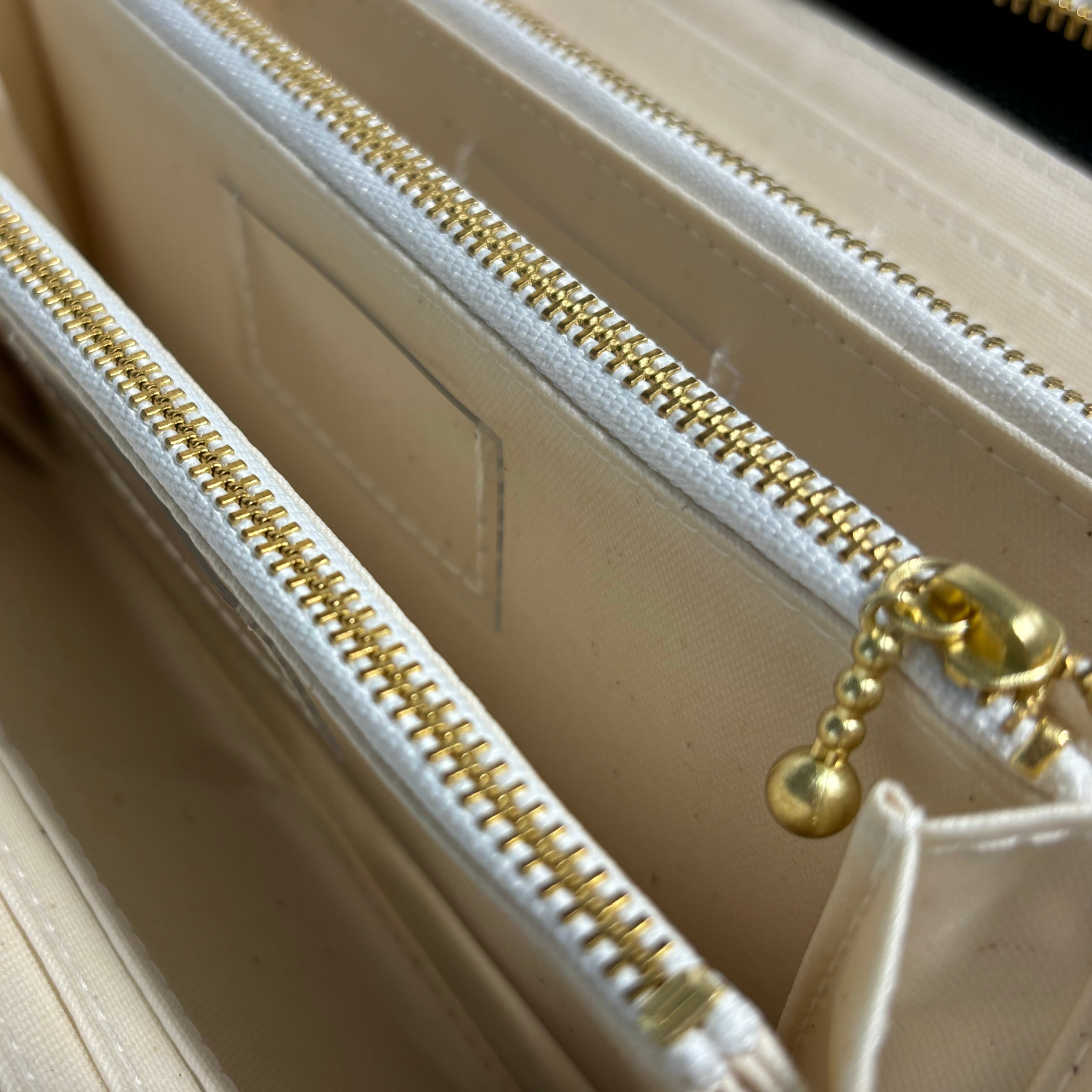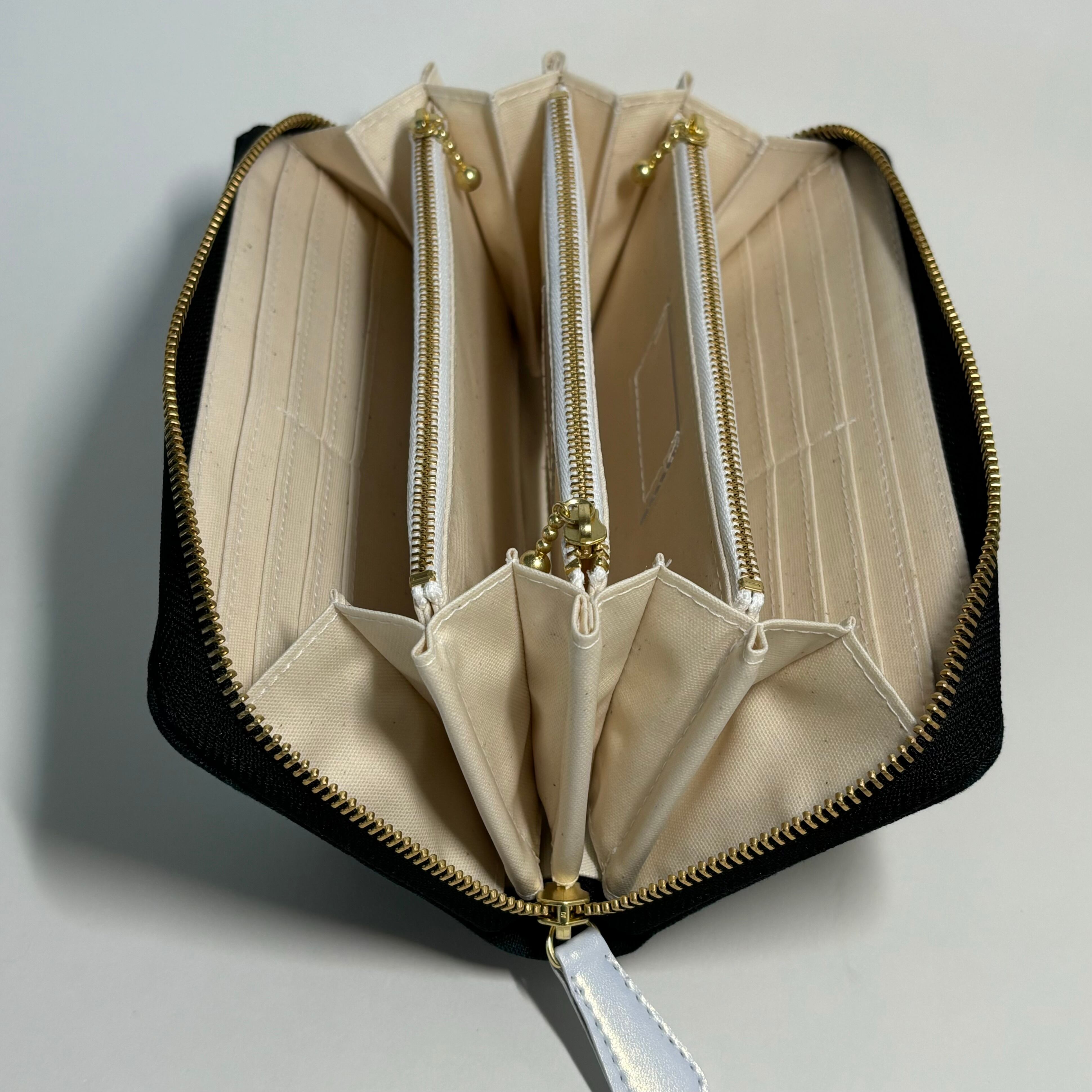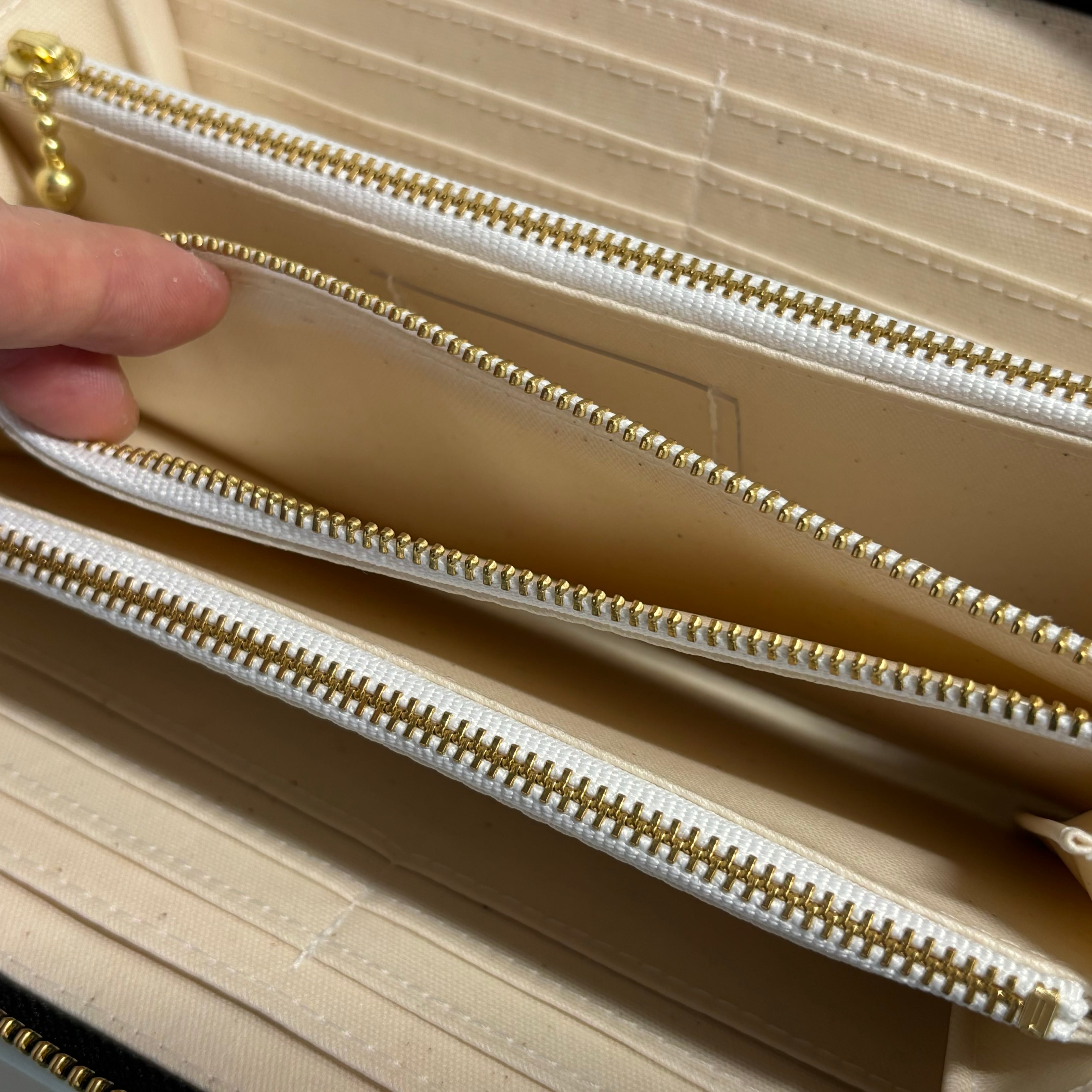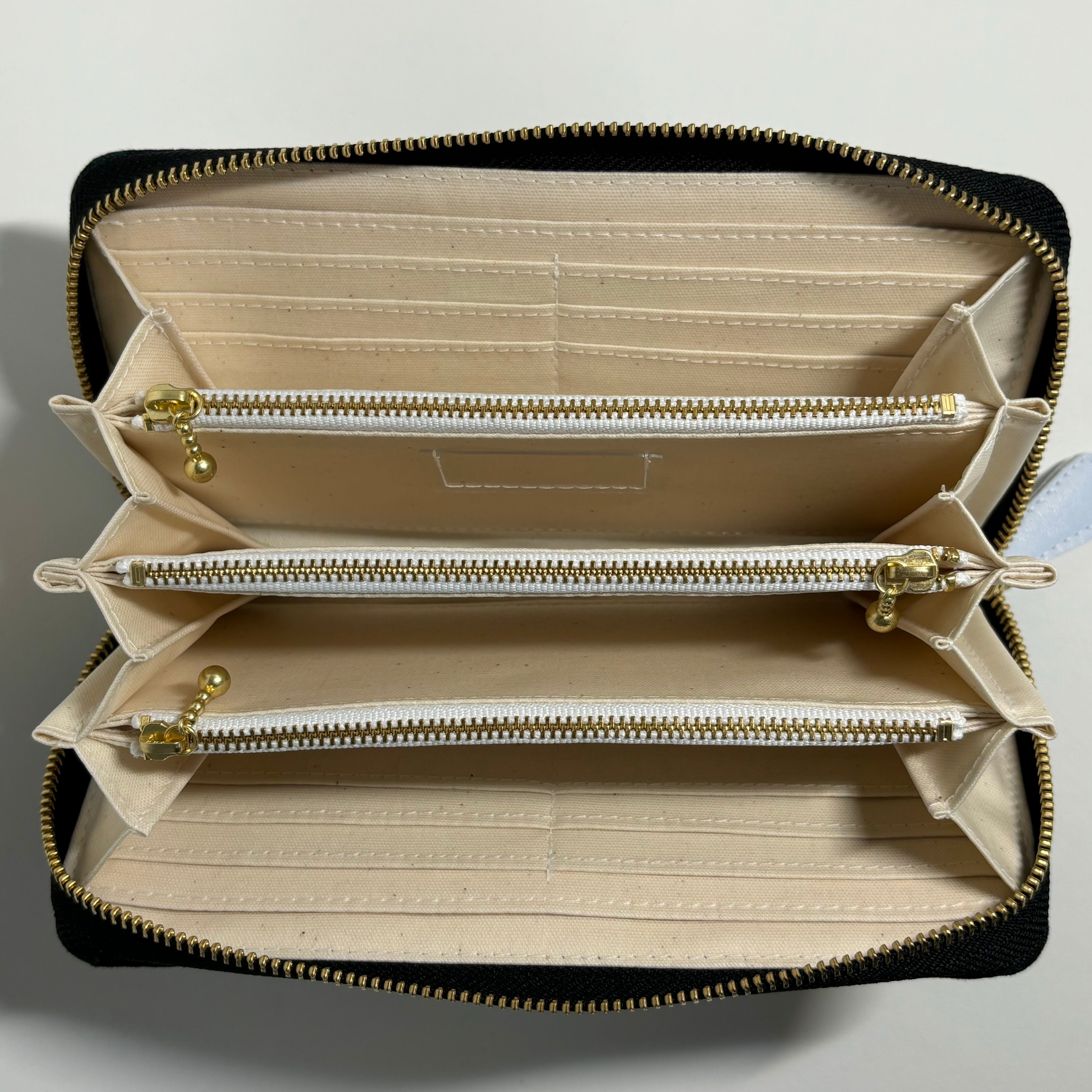 こちらのお財布は3つの費目を管理できるようにファスナーポケットが3つ付いています。