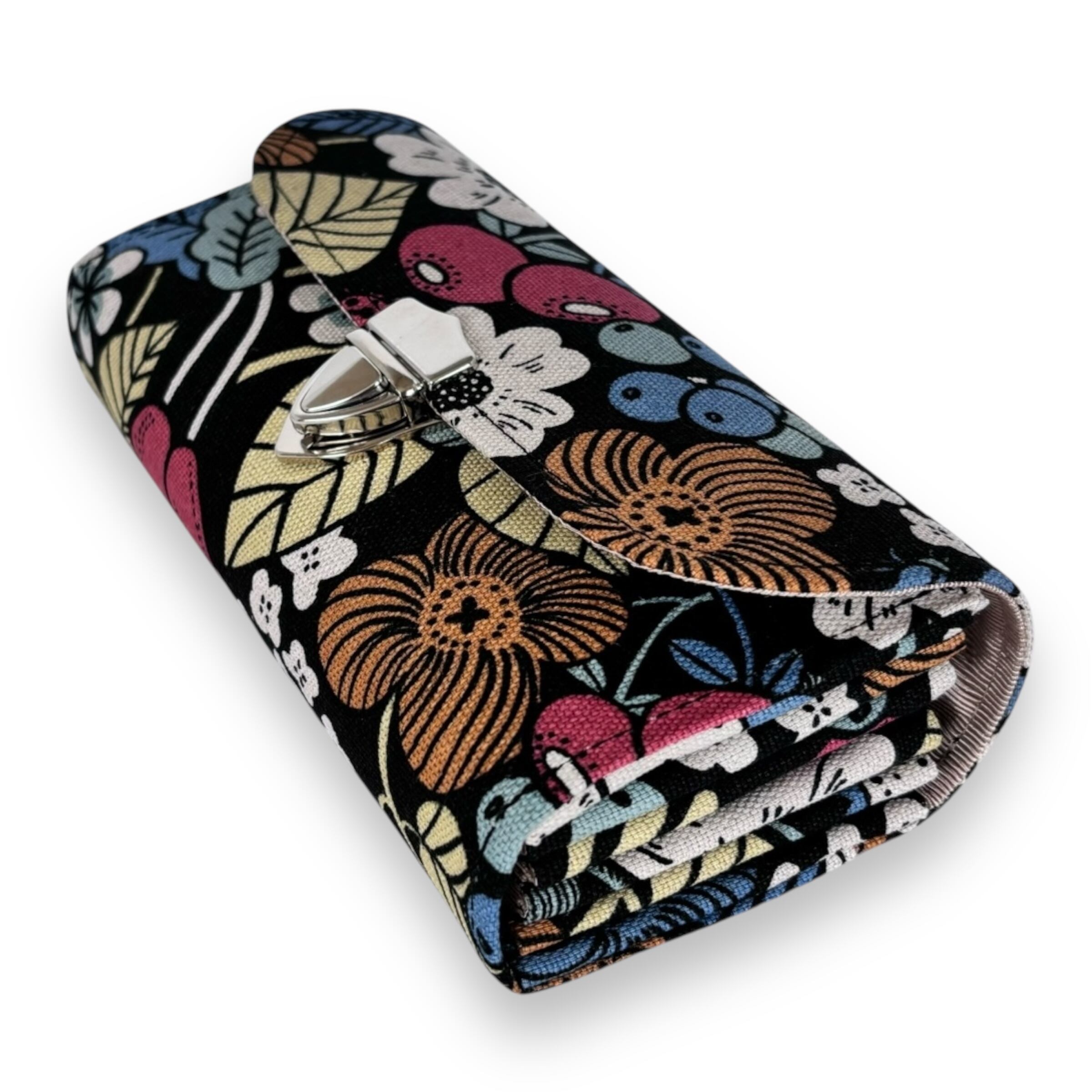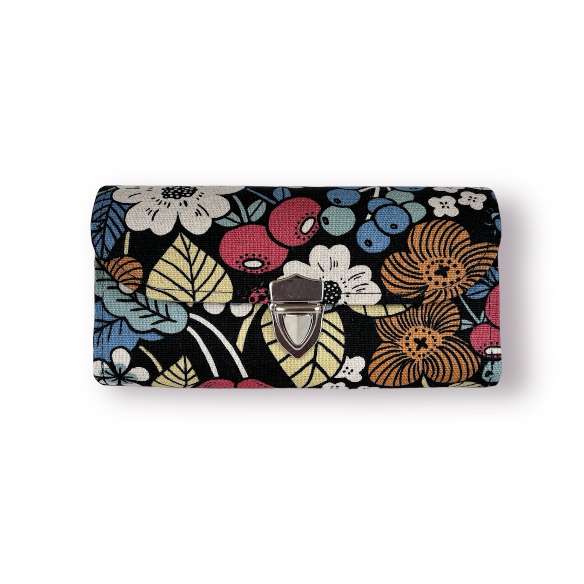 家計やりくり財布/植物柄ブラック