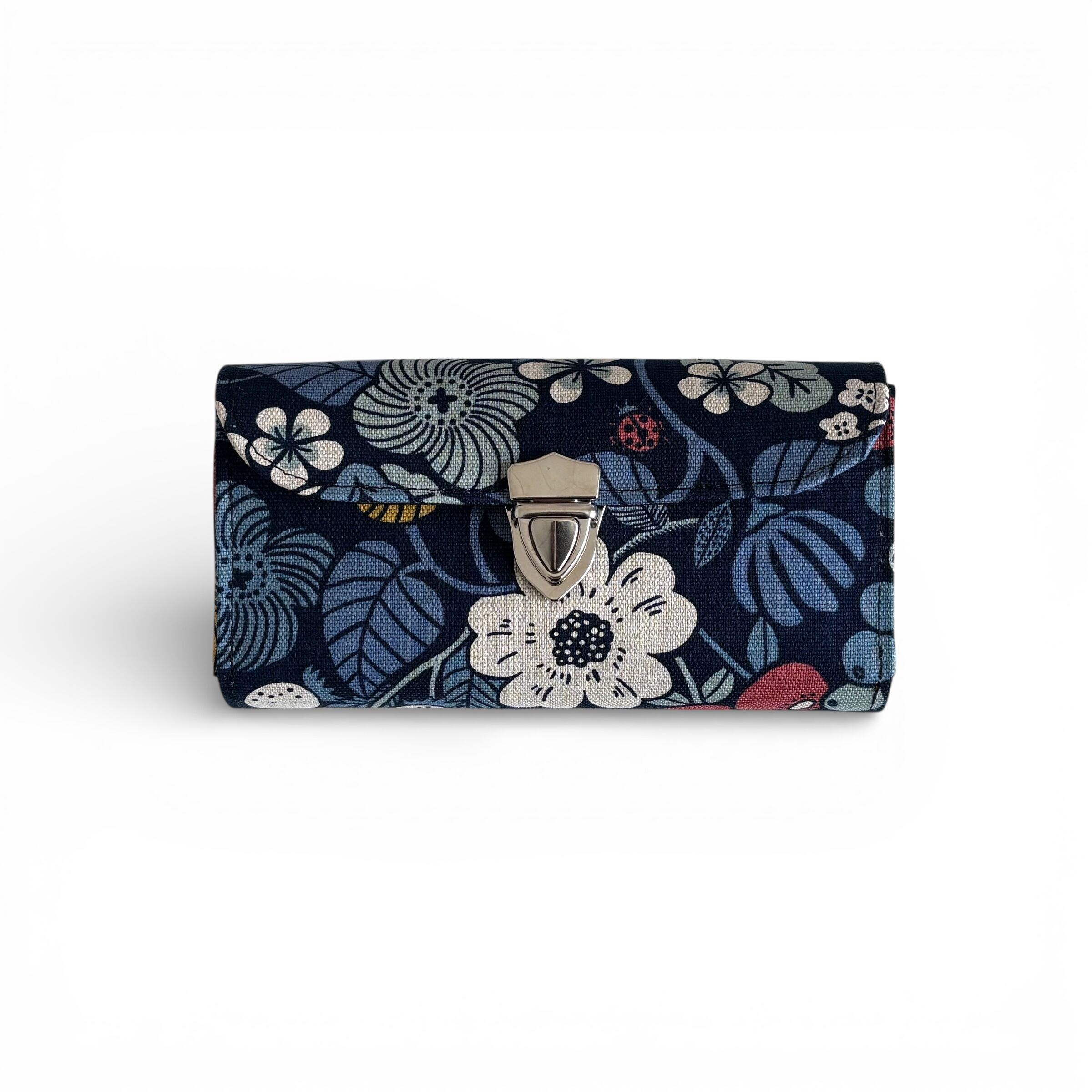 【改良型】家計やりくり財布/植物柄ネイビー