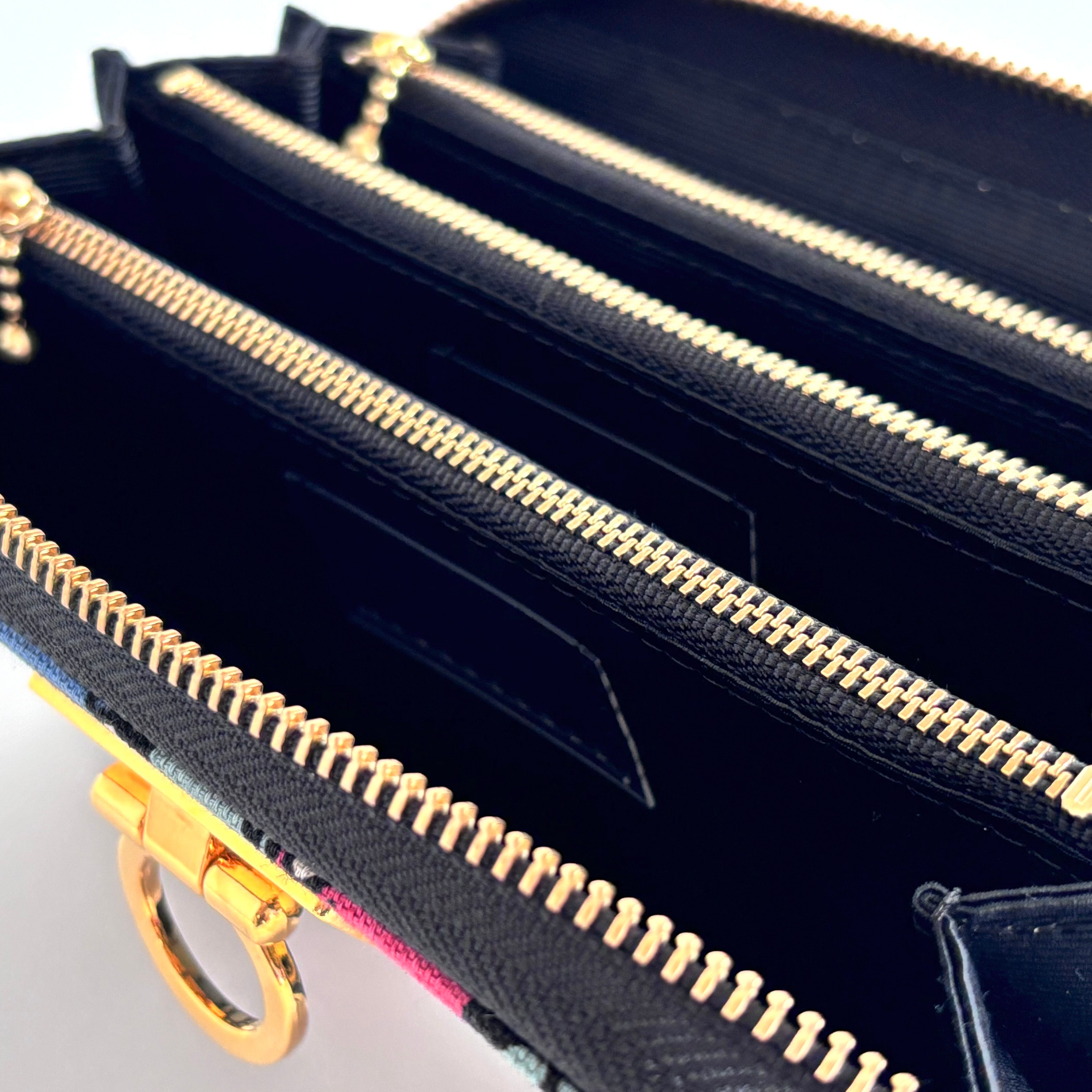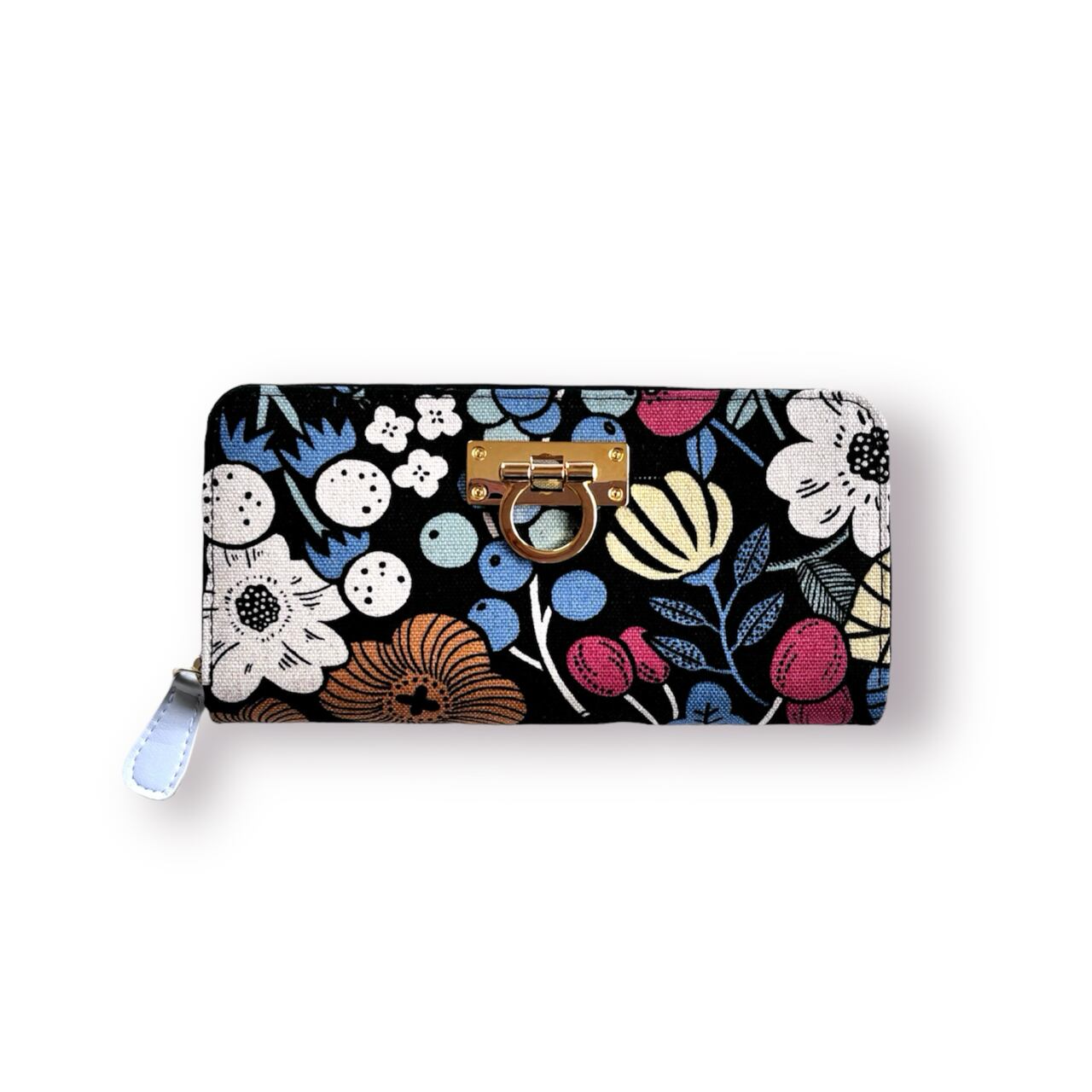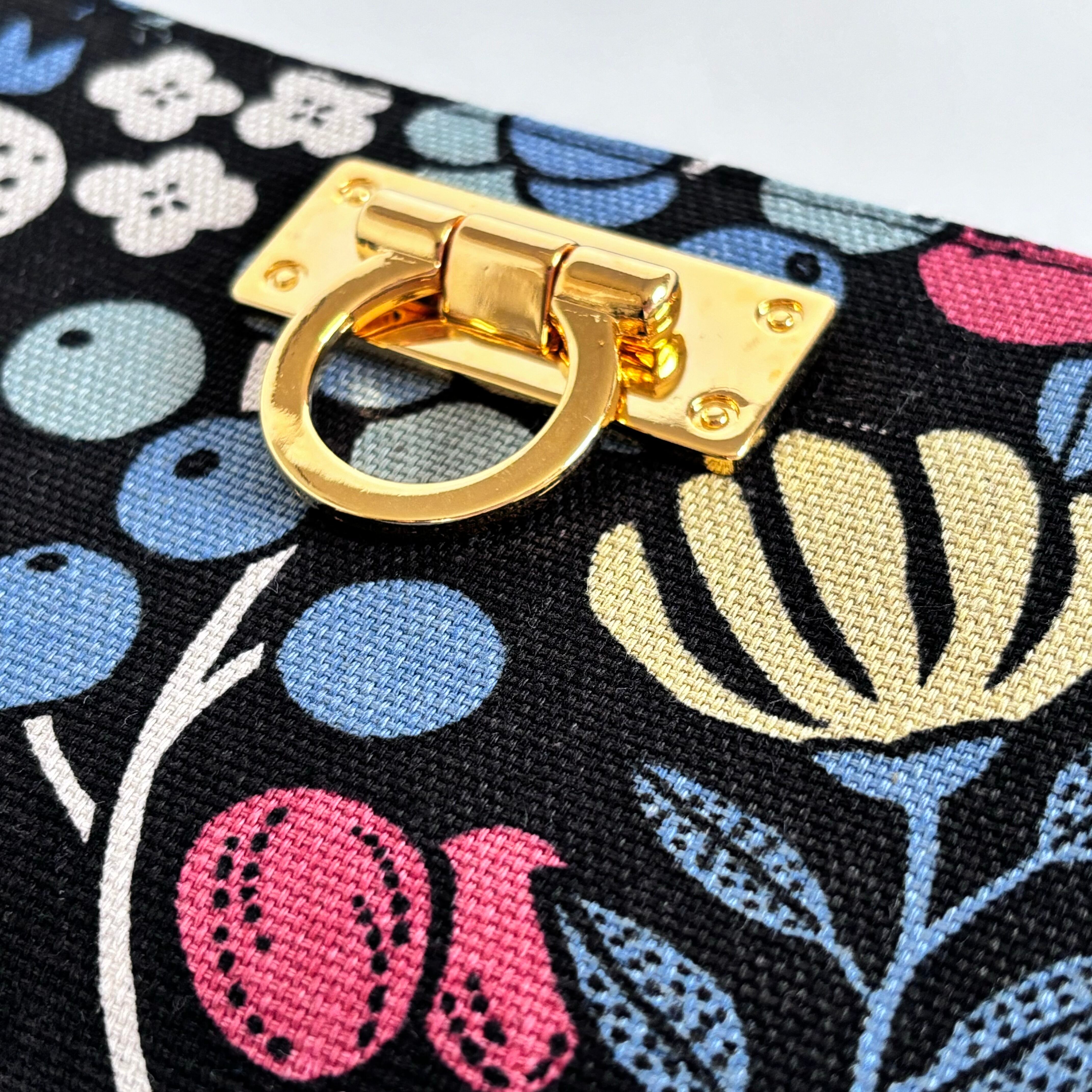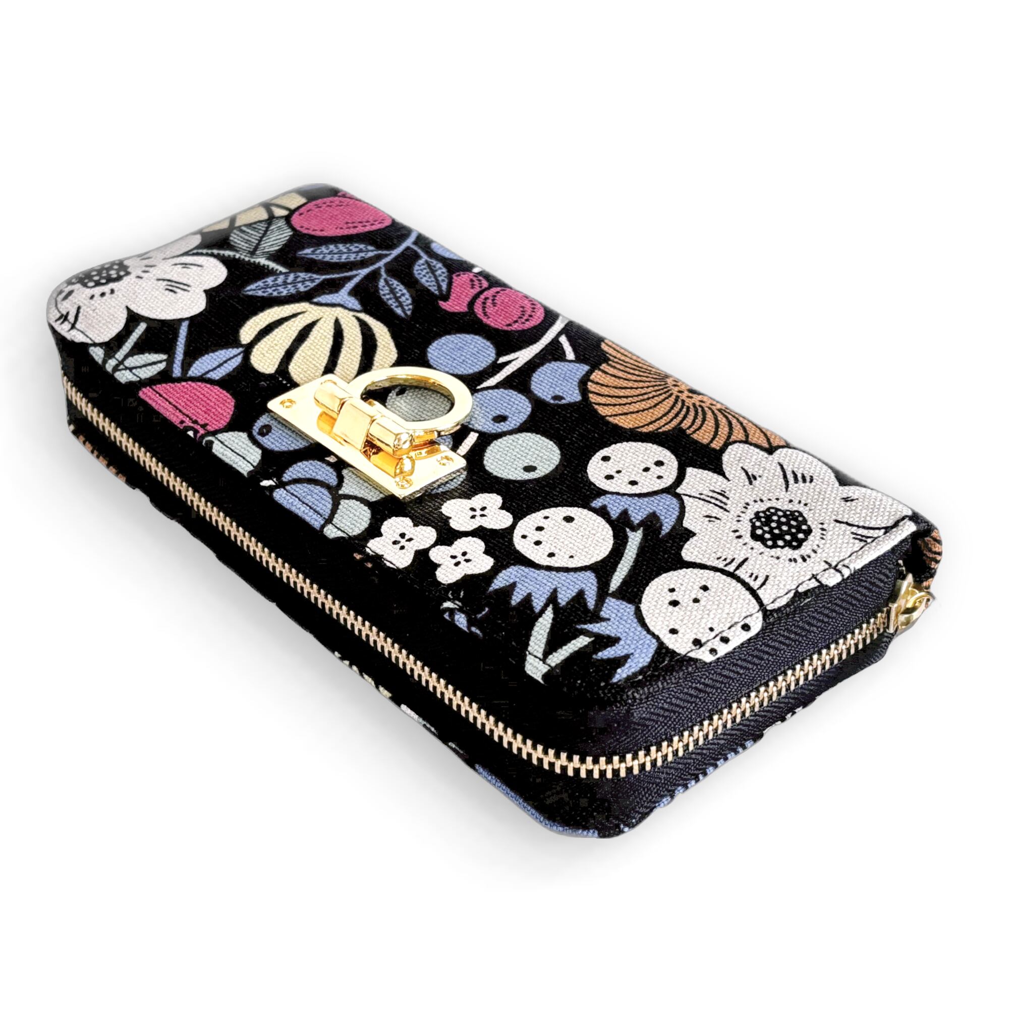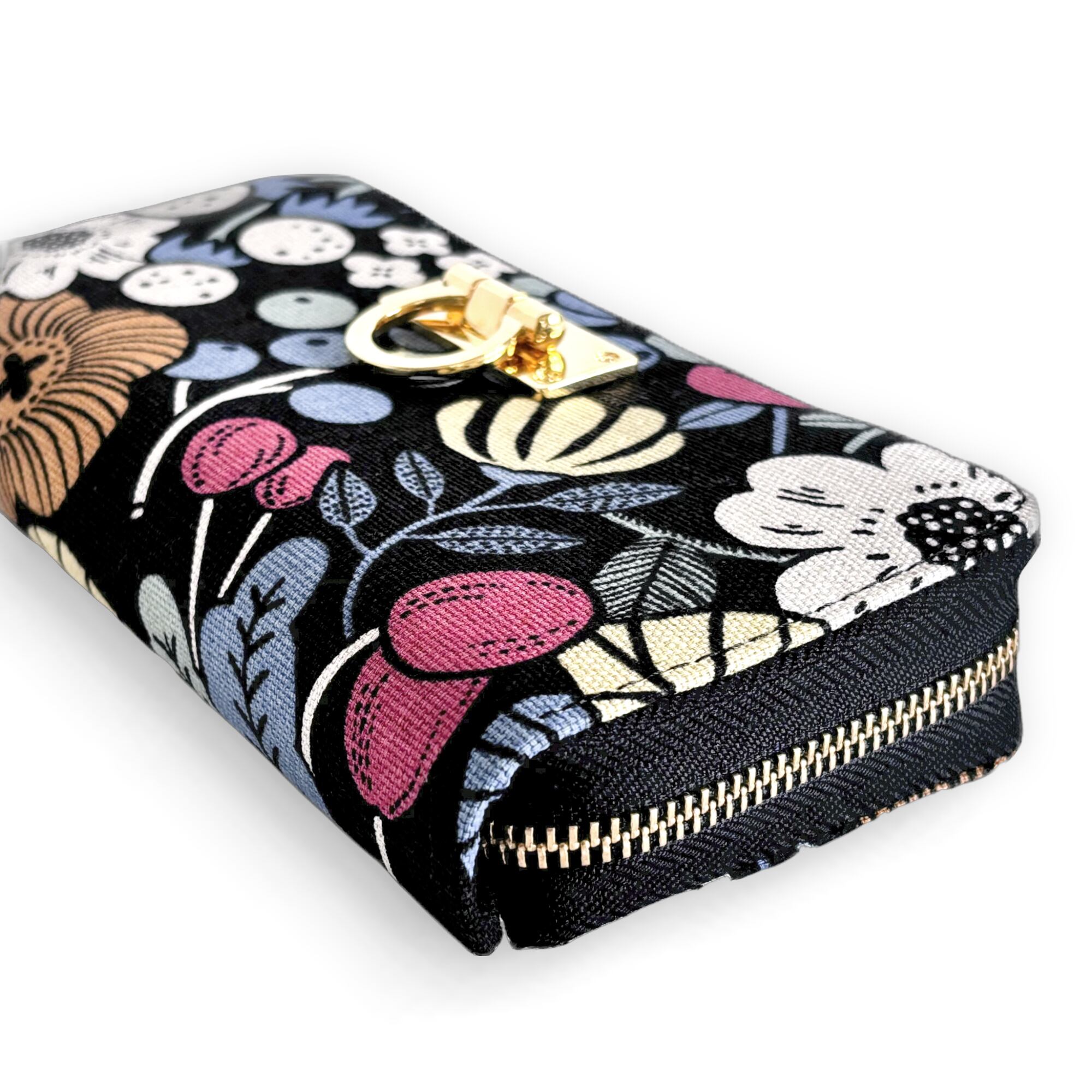 3ファスナーポケット/ 家計やりくり財布/植物柄ブラック