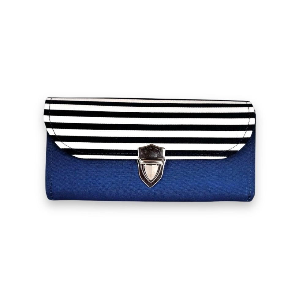 家計やりくり財布/コバルトブルー×ボーダー
