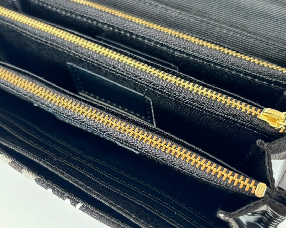 また、ファスナーポケットにはクリアポケットを付けていますので費目を書いた紙を入れられるようになっています。