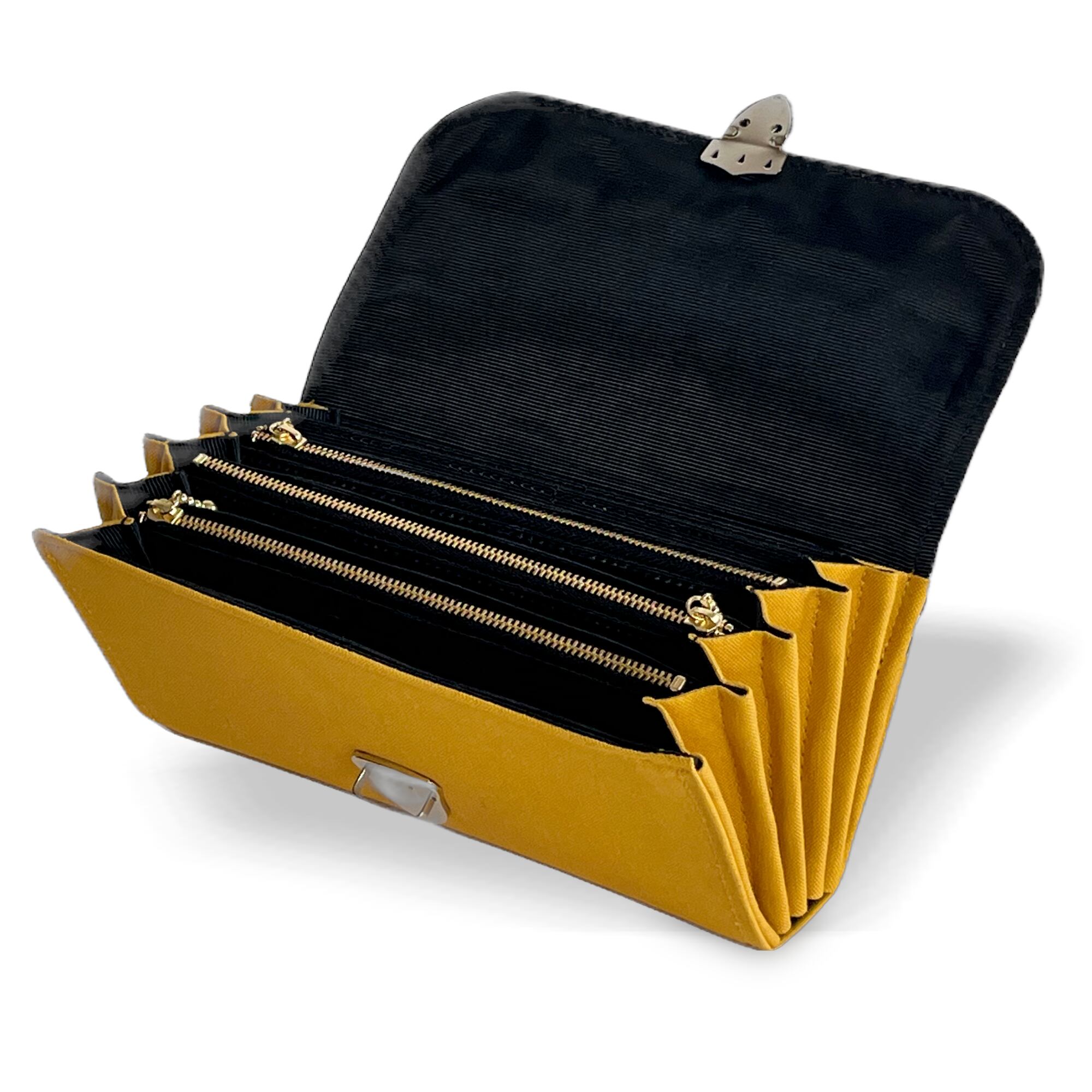 また、ファスナーポケットにはクリアポケットを付けていますので費目を書いた紙を入れられるようになっています。