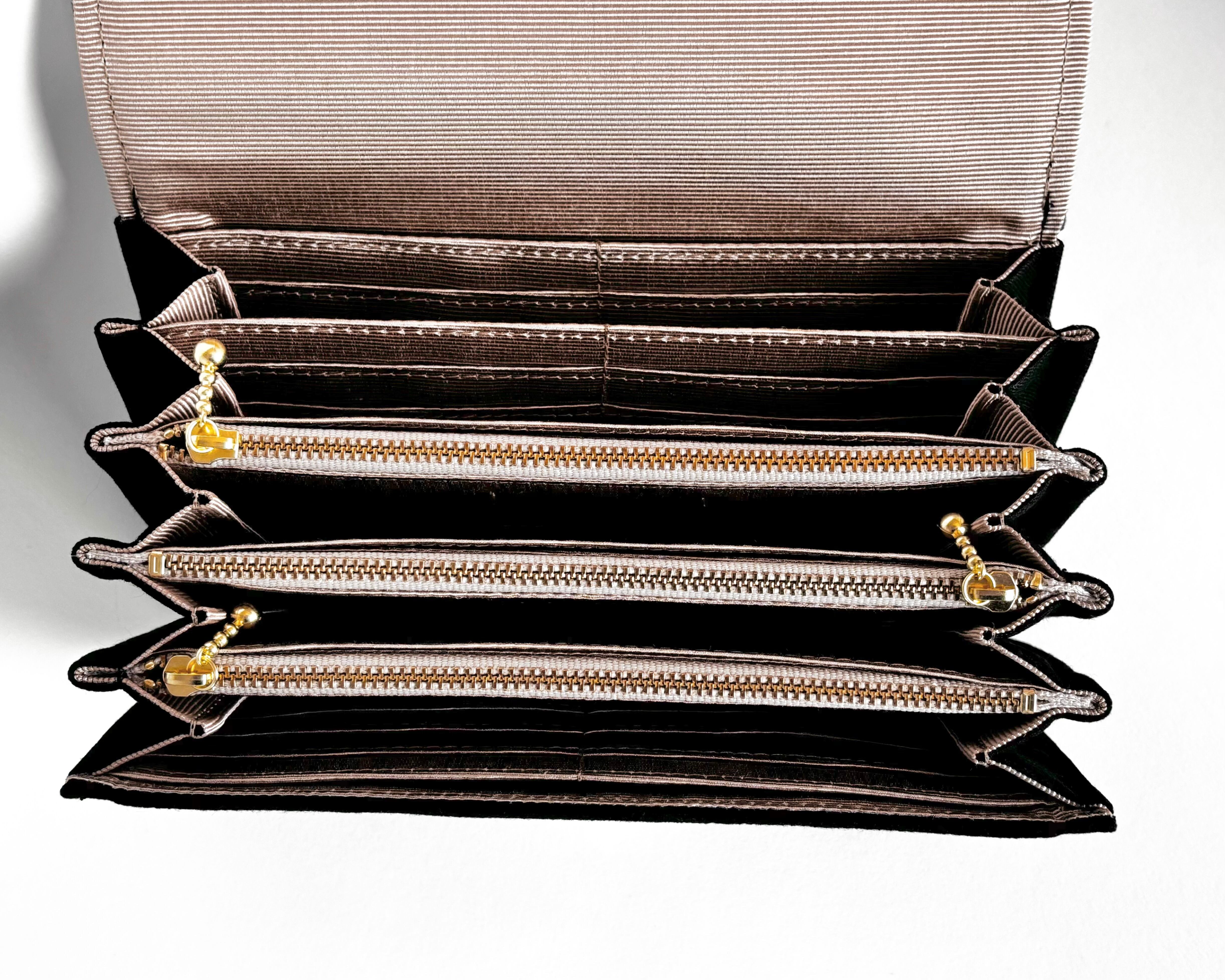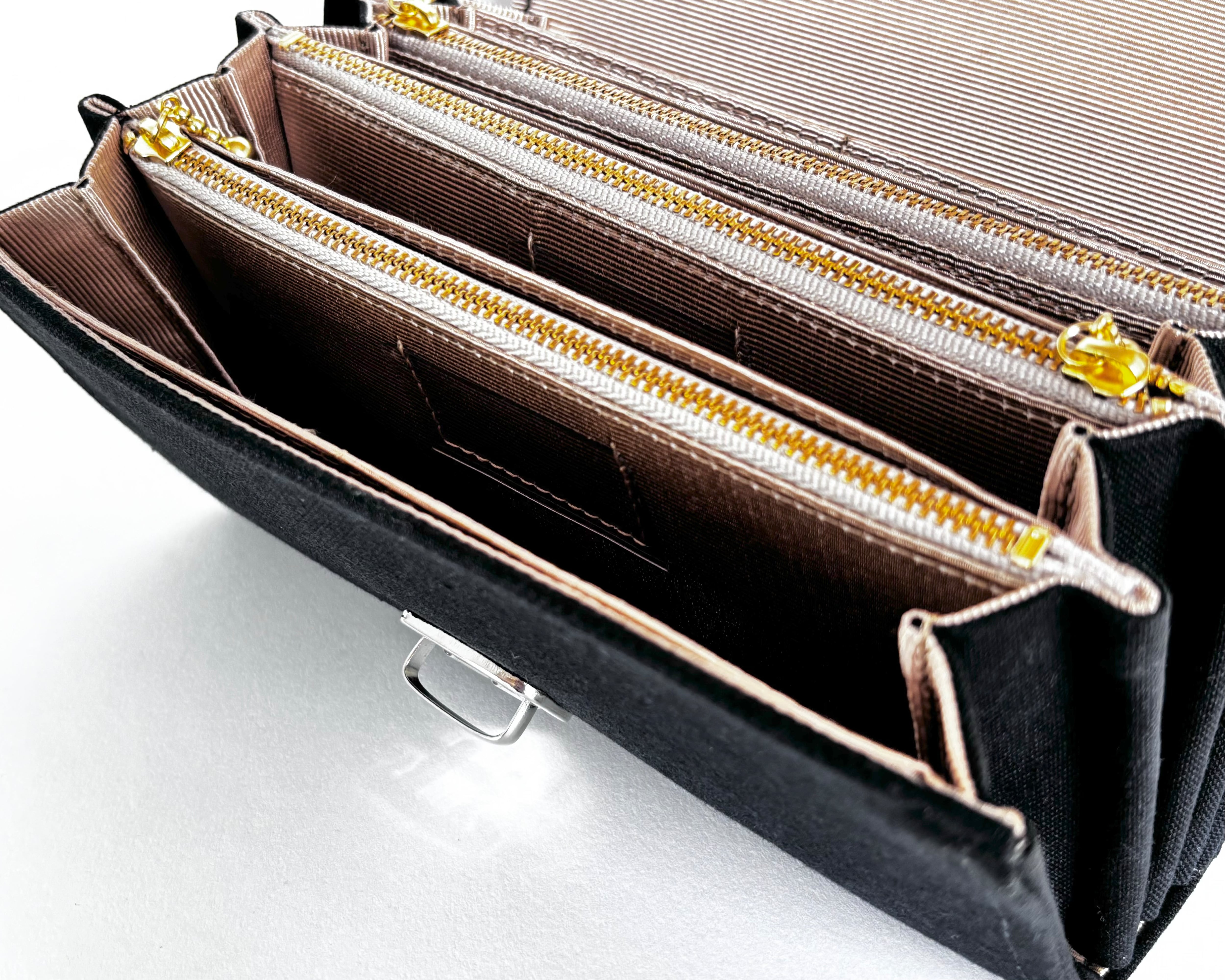そして、ファスナーポケットの裏側にはお札も管理できるようお札ポケットを付けました。