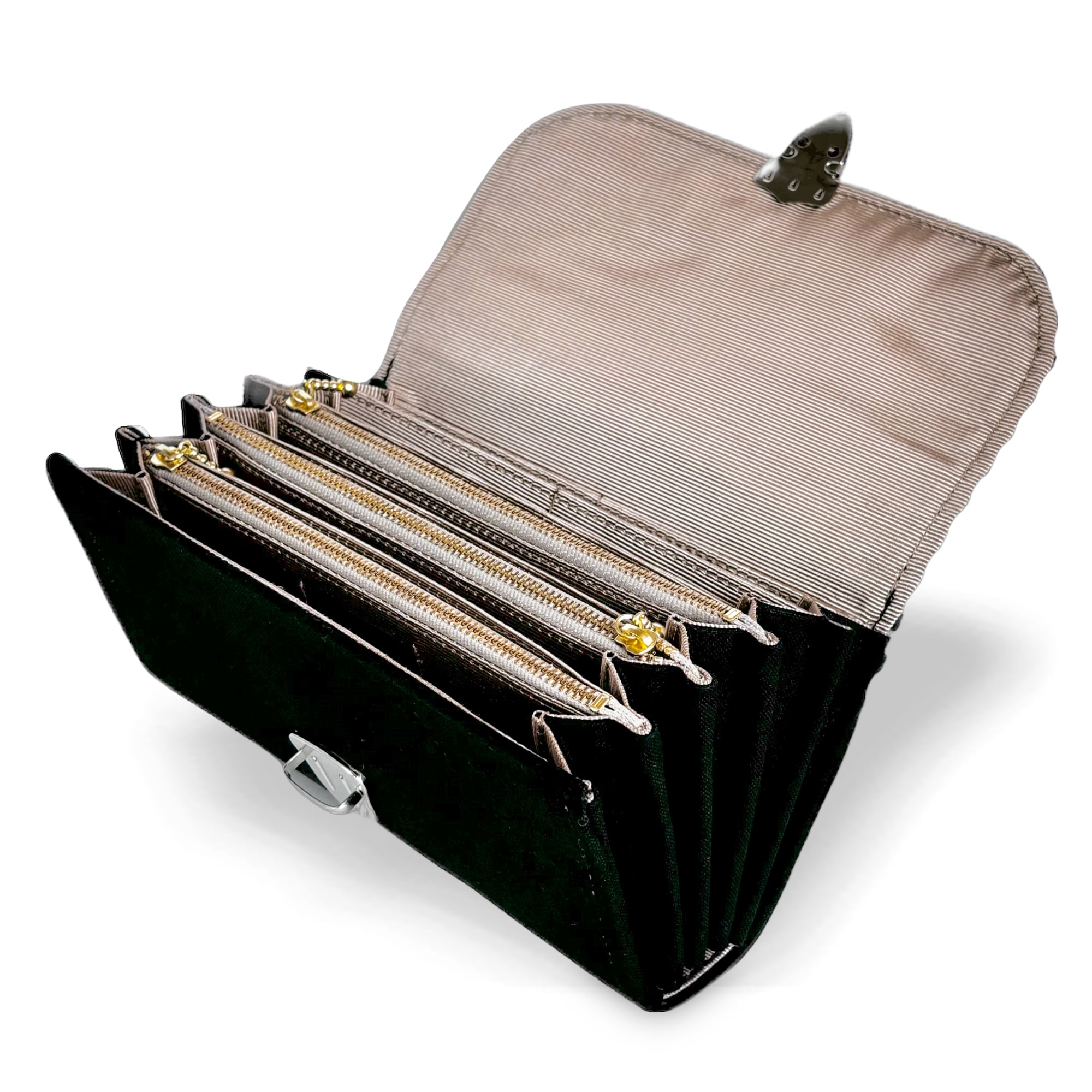 また、ファスナーポケットにはクリアポケットを付けていますので費目を書いた紙を入れられるようになっています。